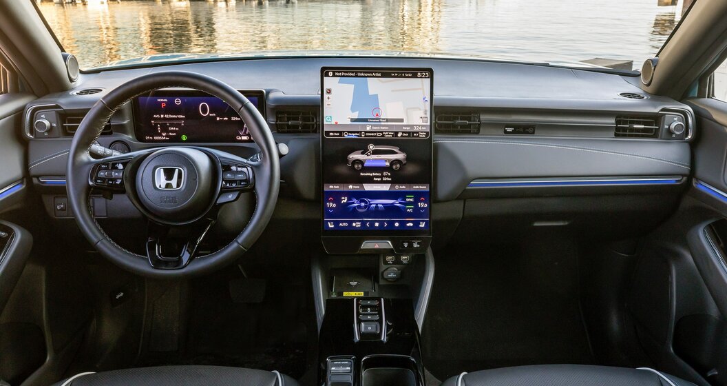 Passé ce « détail », on découvre un véhicule qui s’apparente au HR-V, avec lequel il partage ses dimensions globales, certains panneaux de carrosserie et une partie de son habitacle. On retrouve donc une habitabilité arrière excellente, et un coffre de 361l dans la moyenne. Mais le nouveau venu repose sur une nouvelle plateforme dédiée à l’électrification sur laquelle seront construits les futurs modèles électriques de Honda.