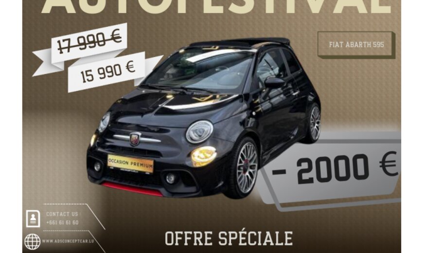 BIENVENUE CHEZ ADS CONCEPT CAR\r\n\r\nINFORMATIONS GÃNÃRALES\r\nMarque: FIAT ABARTH\r\nModèle: 595\r\nAnnée du modèle: 2018\r\n\r\nGARANTIE \r\nADS CONCEPT CAR\r\n12 mois\r\n\r\nRETROUVER CE VÃHICULE SUR NOTRE PARC A FOETZ:\r\n4 Rue de l\\'Avenir L-3895 foetz \r\nLuxembourg\r\n\r\n\r\nNous proposons également des SOLUTIONS DE FINANCEMENT sur place, étudiées et adaptées à votre situation, afin de faciliter l\\'acquisition de votre futur voiture\r\n\r\nProfitez dâune estimation de reprise sur mesure, sans engagement, et réservez un essai personnalisé du véhicule dâoccasion qui retient votre attention.\r\nNos conseillers se tiennent à votre disposition â en ligne, par téléphone ou en showroom â pour vous accompagner à chaque étape.\r\n\r\nLes équipements indiqués ont été recensés avec attention. Cependant, certains éléments peuvent varier ou ne pas apparaître dans cette descrlption.\r\nNous vous recommandons donc de vérifier les équipements qui comptent le plus pour vous avant de confirmer votre achat.\r\nCette présentation est fournie à titre informatif.\r\n\r\n\r\nLISTES DES OPTIONS :\r\n Aide au stationnement arrière\r\n Climatisation\r\n Climatisation automatique\r\n Banquette arrière rabattable\r\n Contrôle de traction\r\n direction assistée\r\n Jantes en alliage\r\n Ordinateur de bord\r\n Phares antibrouillards\r\n Rétroviseurs électriques\r\n Système de navigation GPS \r\n Système multimédia\r\n Contrôle de stabilité\r\n Bluetooth\r\n Pack Sport\r\n Volant multifonctions\r\n Ecran tactile\r\n USB\r\n Volant en cuir\r\n Sièges sport\r\n Rétroviseur intérieur anti-éblouissement autom.\r\n Verrouillage centralisé\r\n Airbag conducteur\r\n Airbag passager\r\n Airbags latéraux\r\n Vitres teintées\r\n SOUS RÃSERVE D\\'ERREURS \r\n\r\nN\\'hésitez pas à nous contacter pour toute question sur nos véhicules :\r\n\r\n+352 661 61 61 60 \r\n+352 621 484 350\r\n www.adsconceptcar.lu\r\n\r\nADS CONCEPT CAR