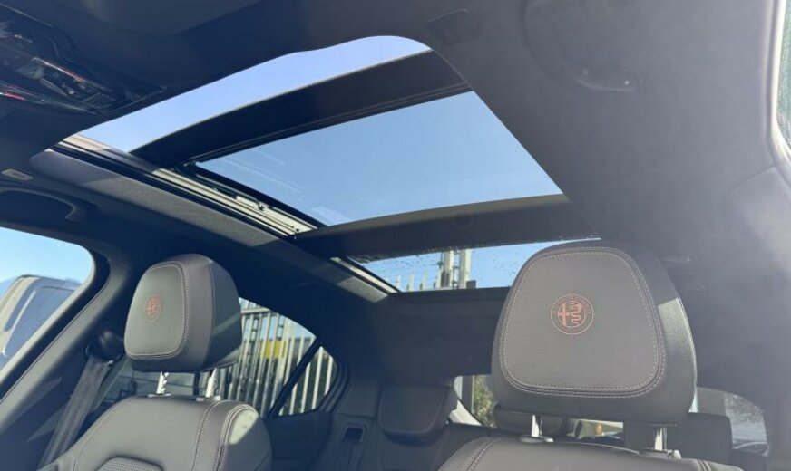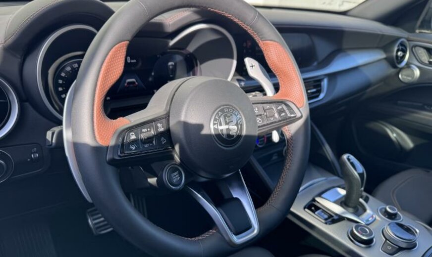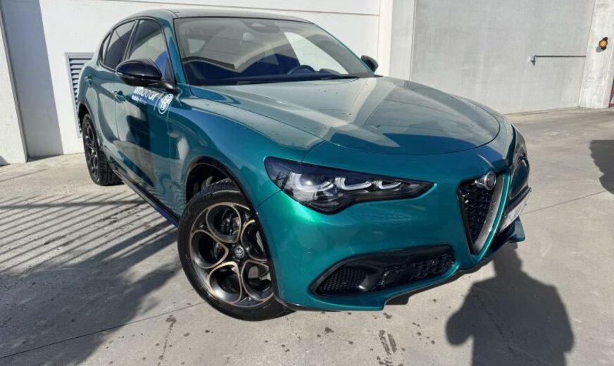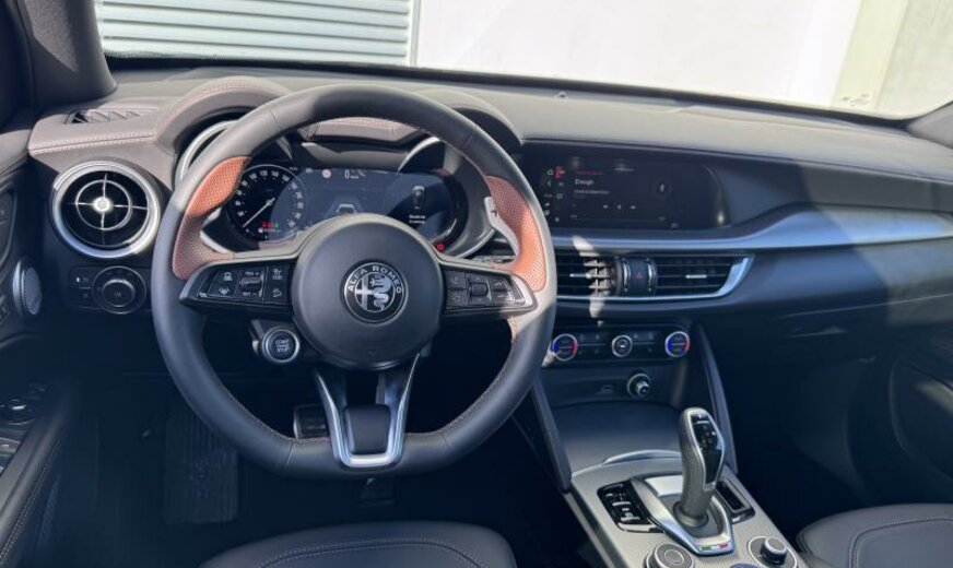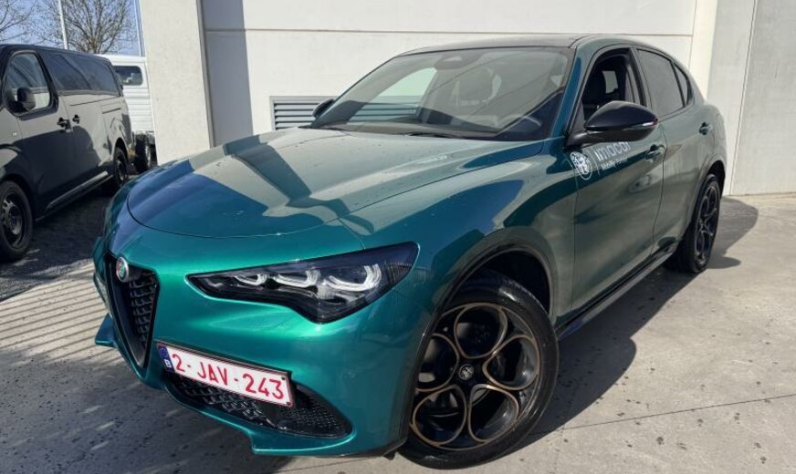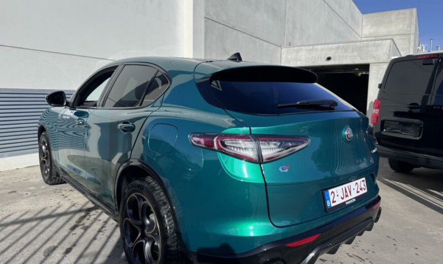 Alfa Connect System, vanaf 07.25, systeem \\\"AQS\\\", deurgrepen buiten verlicht, deurbekleding met omgevingsverlichting, radiatorrooster zwart, buitenspiegels elektrisch regelbaar/dag-nacht automatisch, achterlichten verdonkerd, ruitesproeiers verwarmbaar, decoratie interieur aluminium, brandstoftank groot, sierlijsten ruitkader glanzend zwart, sportpedalen aluminium, bagageafdekking, GSR II A General Safety Regulation , 1995 cc 2,0 L 206 KW, dubbele uitlaat chroom, AWD, sperdifferentieel LSD , actieve ophanging, achterklep elektrisch \\\"Easy Loading\\\", VELG 8.5 J X 20 ALU, naafdeksels, bescherming drijfwerk bumper achter, uitlaatgasnorm Euro 6.4, koude landen, Europa, parelmoer 3 L, model 2024