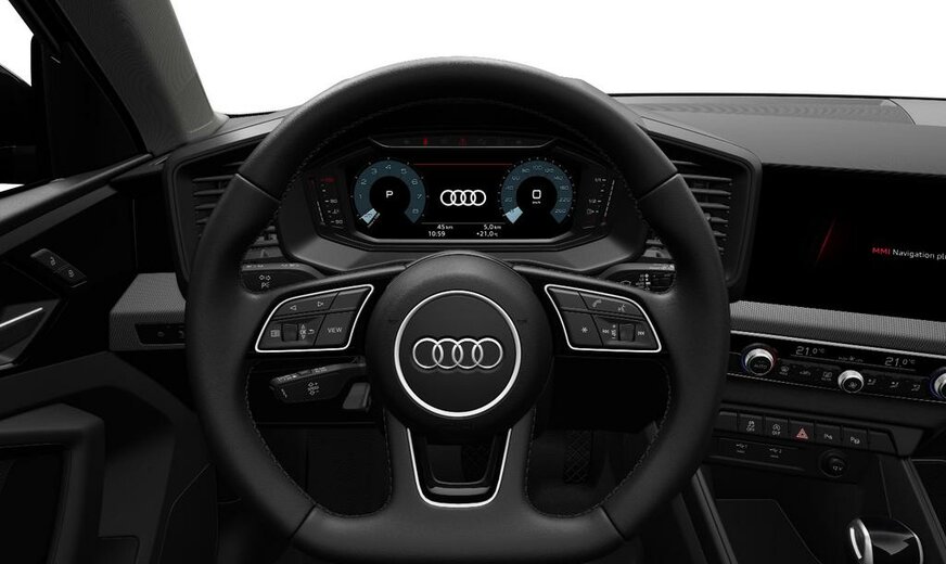 Deze Audi A1 Sportback Business Edition S-line is een toonbeeld van sportieve luxe en geavanceerde technologie. De krachtige uitstraling wordt geaccentueerd door het "Shadow look Plus" pakket en de verduisterde ruiten, terwijl het interieur is afgewerkt met een afgeplat, lederen multifunctioneel sportstuur.