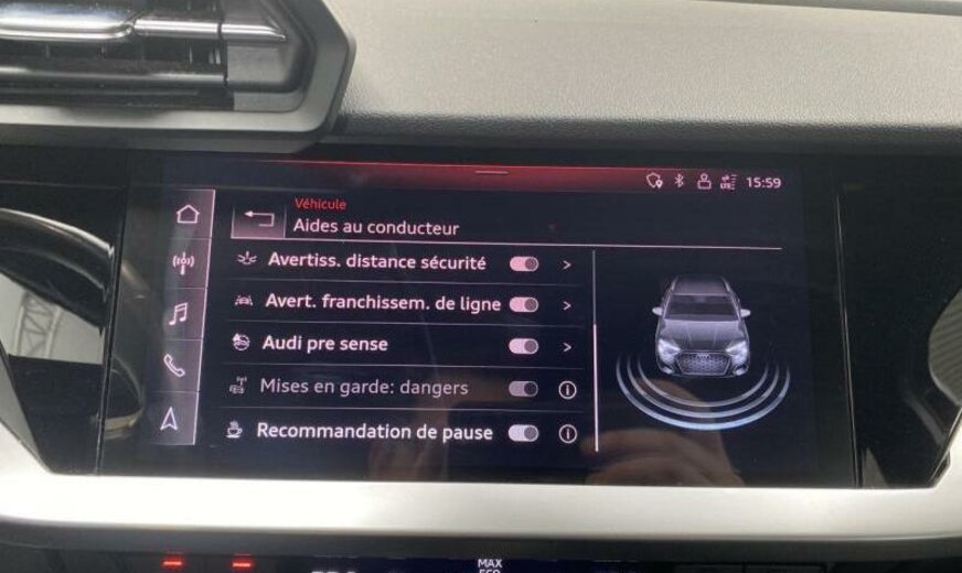 Front Assist avec freinage d\\\'urgence City, sécurité enfants électrique, liquide de refroidissement R1234yf, assistant à la conduite, chauffage supplémentaire à air électrique, radio avec récepteur numérique, rétroviseur g avec miroir asphérique, ouverture et fermeture confort du hayon, garniture pavillon noir, pack vide-poches, pré-équipement pour attache-remorque, fixation siège enfant, appuis lombaires av réglables électrique, 999 cc 1,0 L 81 KW, 205/55 R 17 .. W, JANTES 8 J X 17 ALU, système de gonflage des pneus, Audi Phone Box, transmission hybride M-HEV, réservoir à charbon actif EVAP , Advanced line, FREINS AV 312 X 25