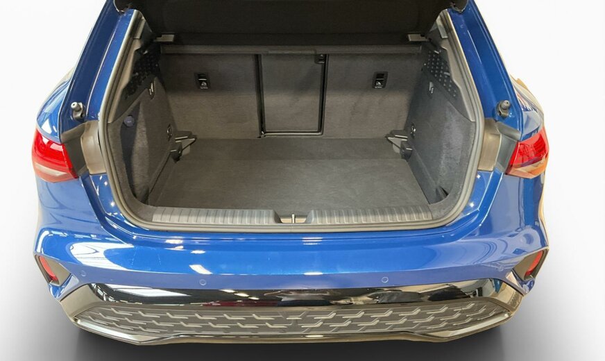 9W9W Bleu Ascari métallisé \r\nAO noir-noir-gris roche/noir-noir /noir/gris acier \r\nPWA Intérieur avec sièges normaux, combinaison cuir/simili cuir noir \r\nPYC Pack de climatisation plus \r\nPYK Pack d\\\'assistance à la conduite et au stationnement plus \r\nWKE Pack Business plus \r\n1JC Suspensions sport \r\n1Z1 Augmentation du remplissage de carburant standard initial \r\n4G3 Assistance aux embardées et assistance aux virages \r\n4GH Vitrage calorifuge et acoustique pour pare-brise avec bande teintée Gris \r\n4UF Airbags frontaux, airbag passager avant désactivable \r\n6C2 Airbags latéraux à l\\\'avant avec système d\\\'airbags rideaux et airbag central à l\\\'avant \r\n6I5 Avertissement de sortie de voie avec assistance d\\\'urgence \r\n7K1 Système de surveillance de la pression des pneus \r\n7UG MMI Navigation plus avec MMI touch \r\n8J3 Audi pre sense avant \r\n98R Pack Infodivertissement 1 uniquement pour Audi \r\n9S9 Cockpit virtuel Audi Plus \r\n9VD Système audio Audi \r\n9ZV Cabine téléphonique Audi Lumière \r\nC9M Roues à 5 rayons en V, 8,0J x 17, pneus 225/45 R17 \r\nFP1 Préparation aux fonctionnalités à la demande \r\nIT3 Audi connect Navigation et Infodivertissement Plus \r\nIU4 Boutique d\\\'applications Audi et interface pour smartphone \r\nIW3 Appel d\\\'urgence et service Audi connect avec télécommande et contrôle Audi connect \r\nNZ2 Appel d\\\'urgence juridique \r\nQK1 Avec caméra multifonction \r\nQR9 Reconnaissance des panneaux de signalisation par caméra \r\nQV3 Diffusion audio numérique \r\n1M5 Préparation de l\\\'attelage de remorque \r\n3A5 Ancrages pour siège enfant ISOFIX à l\\\'avant, top tether et i-Size pour les sièges extérieurs arrière \r\n4H5 Sécurité enfants à commande électrique \r\n5MJ Insert décoratif en Aluminium Foncé \\\"Spektrum\\\" \r\n7X5 Aide au stationnement avec aide au stationnement Plus \r\n8T3 Régulateur de vitesse adaptatif sans limiteur de vitesse \r\nQE1 Forfait rangement et coffre à bagages \r\nQL5 Verre réfléchissant la chaleur teinté foncé