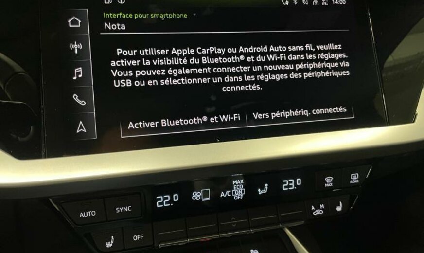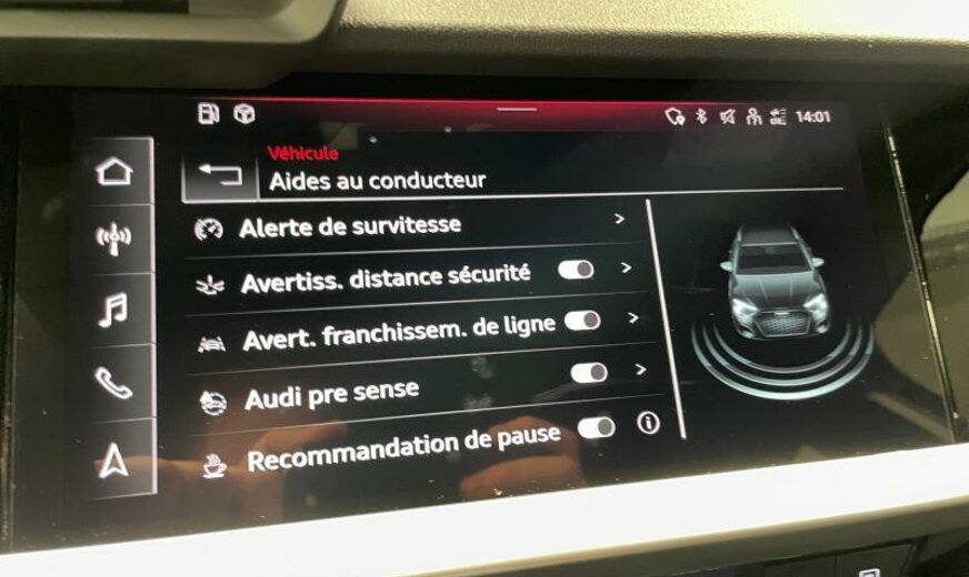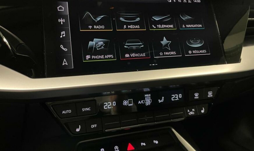 Front Assist avec freinage d\\\'urgence City, liquide de refroidissement R1234yf, assistant à la conduite, pare-brise avec bande de couleur, chauffage supplémentaire à air électrique, radio avec récepteur numérique, rétroviseur g avec miroir asphérique, 6 haut-parleurs, miroir de courtoisie éclairé, extincteur, dossiers ar séparés en 3 parties avec accoudoir central, 999 cc 1,0 L 81 KW, JANTES 8 J X 17 ALU, roue de secours temporaire, Audi Phone Box, transmission hybride M-HEV, réservoir à charbon actif EVAP , Advanced line, freins av 288x15