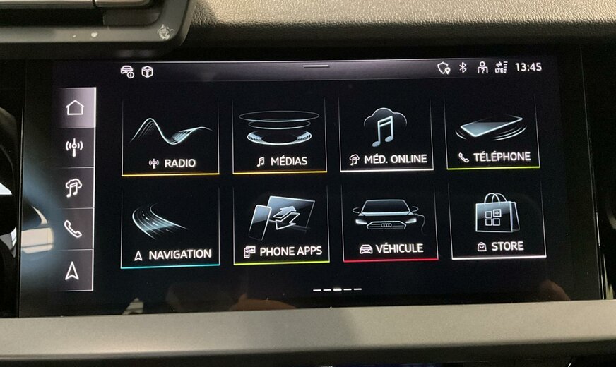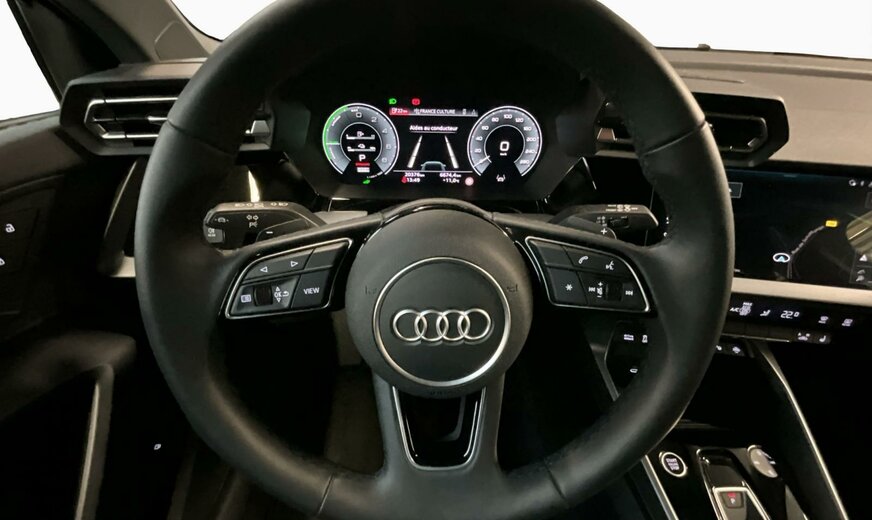 0E0E Noir mythique métallisé \r\nAI noir argent-noir/noir-noir/noir/gris acier \r\nPX2 Phares à LED et feux arrière à LED avec clignotants dynamiques Arrière \r\nPYC Pack de climatisation plus \r\nPYK Pack d\\\'assistance à la conduite et au stationnement plus \r\nWAT Pack Business \r\n0LZ Avec plaques/autocollants/certificats de sécurité spéciaux pour le Luxembourg \r\n0SS Autocollants/plaques, anglais-franais \r\n0VC Manuel en allemand \r\n1EX Plaque du constructeur spéciale pour l\\\'UE \r\n1Z1 Augmentation du remplissage de carburant standard initial \r\n3A0 i-Size et Top Tether pour les sièges arrière extérieurs \r\n4G3 Assistance aux embardées et assistance aux virages \r\n4GH Vitrage calorifuge et acoustique pour pare-brise avec bande teintée Gris \r\n4UF Airbags frontaux, airbag passager avant désactivable \r\n6C2 Airbags latéraux à l\\\'avant avec système d\\\'airbags rideaux et airbag central à l\\\'avant \r\n6I5 Avertissement de sortie de voie avec assistance d\\\'urgence \r\n76C Câble de recharge mode 3 pour recharge publique 11 kW AC \r\n7K1 Système de surveillance de la pression des pneus \r\n7UG MMI Navigation plus avec MMI touch \r\n8J3 Audi pre sense avant \r\n98R Pack Infodivertissement 1 uniquement pour Audi \r\n9S9 Cockpit virtuel Audi Plus \r\n9VD Système audio Audi \r\n9ZV Audi phone box light \r\nB32 Pays d\\\'homologation Luxembourg \r\nFP1 Préparation aux fonctionnalités à la demande \r\nIT3 Audi connect Navigation et Infodivertissement Plus \r\nIU4 Boutique d\\\'applications Audi et interface pour smartphone \r\nIW3 Appel d\\\'urgence et service Audi connect avec télécommande et contrôle Audi connect \r\nJE3 Module de données pour l\\\'Europe \r\nNI7 Code contrôle SWIN \r\nNZ2 Appel d\\\'urgence juridique \r\nQK1 Avec caméra multifonction \r\nQR9 Reconnaissance des panneaux de signalisation par caméra \r\nQV3 Diffusion audio numérique \r\n0YD Plage de poids 4 seulement numéro de contrôle pour pose pas de prévision des besoins \r\n2Z0 Sans désignation de modèle à l\\\'arrière \r\n7X5 Aide au stationnement avec aide au stationnement Plus \r\n8G1 Assistance aux feux de route \r\n8T3 Régulateur de vitesse adaptatif sans limiteur de vitesse \r\nC53 Autorisation de circulation, supplément \r\nL71 Plage de suspension 71 seulement numéro de contrôle pour pose pas de prévision des besoins \r\nQL5 Verre réfléchissant la chaleur teinté foncé \r\nS9S Code contrôle