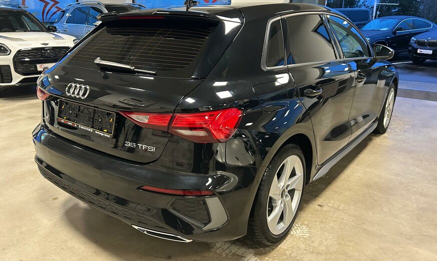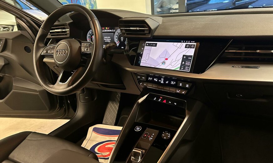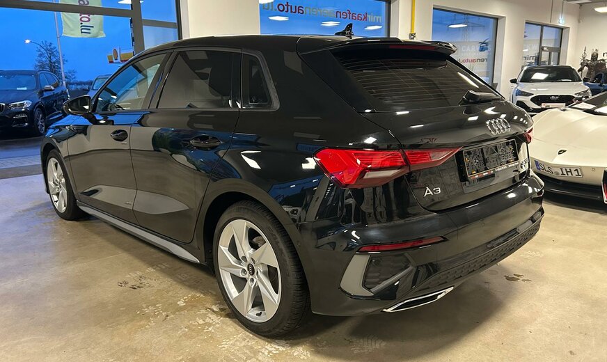 Audi A3 Sonderausstattung: Ablage- und Gepäckraum-Paket, Anhängerkupplung Vorbereitung, Audi connect (Internetbasierende Dienste), Audi Smartphone Interface, Fahrassistenz-System: Parklenkassistent, Frontscheibe Akustikglas, Isofix-Aufnahmen für Kindersitz an Beifahrersitz und Rücksitz, Kombiinstrument digital (virtual cockpit plus), Komfort-Klimaautomatik 2-Zonen, Lenkrad (Leder - 3-Speichen) mit Multifunktion plus und Schaltfunktion, Metallic-Lackierung, Multi-Media-Interface MMI Navigation Plus mit MMI Touch, Rücksitzlehne geteilt/klappbar (40:20:40), Sitzbezug / Polsterung: Leder / Kunstleder mono.pur 550 Kombination, Sitzheizung vorn Weitere Ausstattung: 6 Lautsprecher, Airbag Beifahrerseite abschaltbar, Airbag Fahrer-/Beifahrerseite, Audi connect (Notruf- und Assistance-System), AuÃenspiegel asphärisch, links, AuÃenspiegel elektr. verstell- und heizbar, beide, AuÃenspiegel konvex, rechts, AuÃenspiegel Wagenfarbe, Dachhimmel Stoff, Dachkantenspoiler S-line, Einstiegsleisten mit Aluminiumeinlage und Schriftzug, beleuchtet, Fahrassistenz-System: Ausweich-Assistent, Fahrassistenz-System: Bremsassistent (Audi pre sense front), Fahrassistenz-System: Spurverlassenswarnung, Funkschlüssel, FuÃmatten Velours, Geschwindigkeits-Begrenzeranlage, Innenausstattung: Dekoreinlagen Akzentteile in der Armaturentafel in Glasoptik schwarz, Innenausstattung: Dekoreinlagen Seideneffektlack, Platinum-Grau, Karosserie: 4-türig, Kindersicherung elektr. betätigt, Kopf-Airbag-System (Sideguard), Kopfstützen hinten (3-fach), Lenksäule (Lenkrad) mech. Höhen-/Längsverstellung, LM-Felgen, Mild-Hybrid 110 kW (Motor 1,5 Ltr. - 110 kW 16V TFSI ACT), Mild-Hybrid-Technologie, Modellvariante COD (cylinder on demand), Multi-Media-Interface MMI Basic Plus / MMI Radio Plus, Otto-Partikelfilter (OPF), Parkbremse elektro-mechanisch, Radioempfang digital (DAB), Reifendruck-Kontrollsystem, Schadstoffarm nach Abgasnorm Euro 6d, Scheinwerfer Basis (LED - Technologie), Seitenairbag vorn, Sitzbelegungserkennung für Sicherheitsgurte, Sport-Fahrwerk, Start/Stop-Anlage, Steckdose (12V-AnschluÃ) in Mittelkonsole vorn, StoÃfänger Sport-Design (S-line), Universal-Schnittstelle Bluetooth