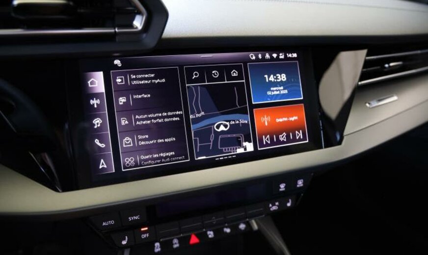 Front Assist avec freinage d\\'urgence City, liquide de refroidissement R1234yf, assistant à la conduite, pare-brise avec bande de couleur, radio avec récepteur numérique, rétroviseur g avec miroir asphérique, garnissage cuir/simili-cuir avec logo S en relief, garniture pavillon noir, monogramme S-line au volant, appuis lombaires av réglables électrique, dossiers ar séparés en 3 parties avec accoudoir central, 1498 cc 1,5 L 110 KW, 7 J x 16 Alu, système de gonflage des pneus, Audi Phone Box, encarts décoratifs aluminium noir \\Spektrum\\, look aluminium, suspension ar à 4 bras, transmission hybride M-HEV, réservoir à charbon actif EVAP , modèle 2024 Facelift , freins av 288x15, pédalier Sport