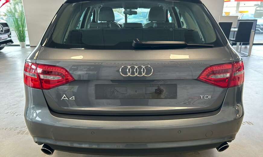 Audi A4 Das Fahrzeug wird nur an Gewerbetreibende oder in den Export verkauft !!!! Sonderausstattung: Ablage-Paket, Außenspiegel elektr. verstell- und heizbar, beide, CD-Wechsler im Handschuhfach, Dachhimmel Stoff, schwarz, Einparkhilfe vorn und hinten, optisch (APS Plus), Fahrer-Informations-System (FIS) mit Farbdisplay, Glanz-Paket, Innenspiegel mit Abblendautomatik, Komfort-Klimaautomatik 3-Zonen, Licht-Paket, Metallic-Lackierung, Multi-Media-Interface MMI Navigation Plus, Seitenairbag hinten, Sitzbezug / Polsterung: Leder Milano, Sitzheizung vorn, Xenon-Scheinwerfer Plus (Abblend- und Fernlicht) Weitere Ausstattung: Airbag Fahrer-/Beifahrerseite, Antriebs-Schlupfregelung (ASR), Ausstattungs-Paket: Attraction, Ausstattungs-Paket: Standard, Außenspiegel Wagenfarbe, Außentemperaturanzeige, Dachreling verchromt, Elektron. Differentialsperre (EDS), Fensterheber elektrisch vorn + hinten, Gepäckraumklappe elektr. betätigt (öffnen + schliessen), Getränkehalter in Mittelkonsole, Innenausstattung: Dekoreinlagen hochglänzend / Reflex, Isofix-Aufnahmen für Kindersitz, Karosserie: 4-türig, Kopf-Airbag-System (Sideguard), LM-Felgen, Modellpflege, Monochrom-Display (6,5 Zoll), Motor 3,0 Ltr. - 150 kW V6 24V TDI, Reifenkontroll-Anzeige, Rücksitzlehne geteilt/klappbar, Schadstoffarm nach Abgasnorm Euro 5, Seitenairbag vorn, Wärmeschutzverglasung grün getönt