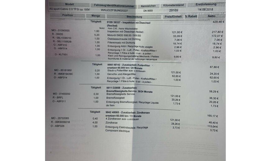 * Historique d'entretien complet audi (carnet / factures)