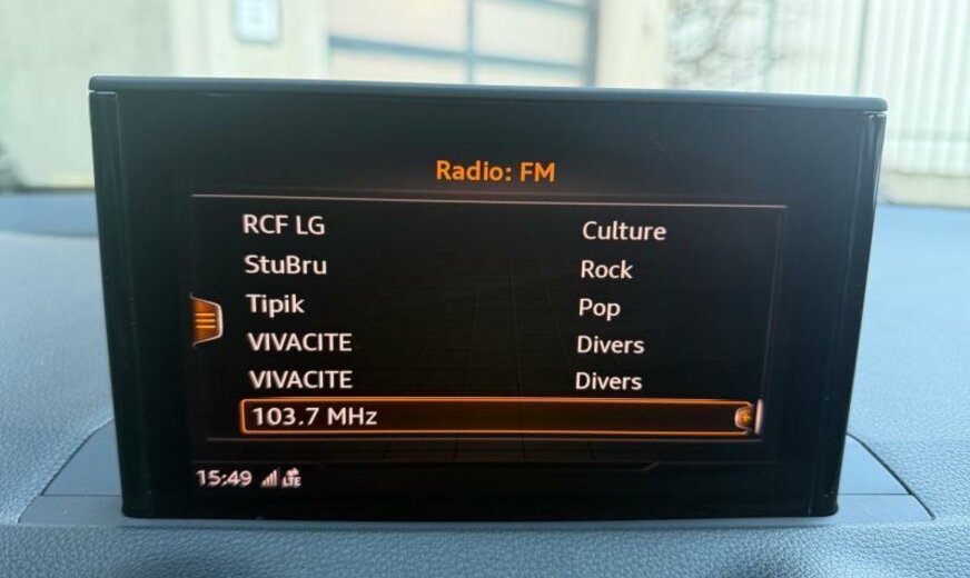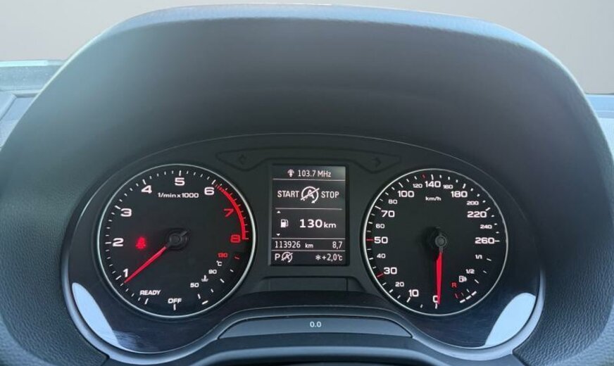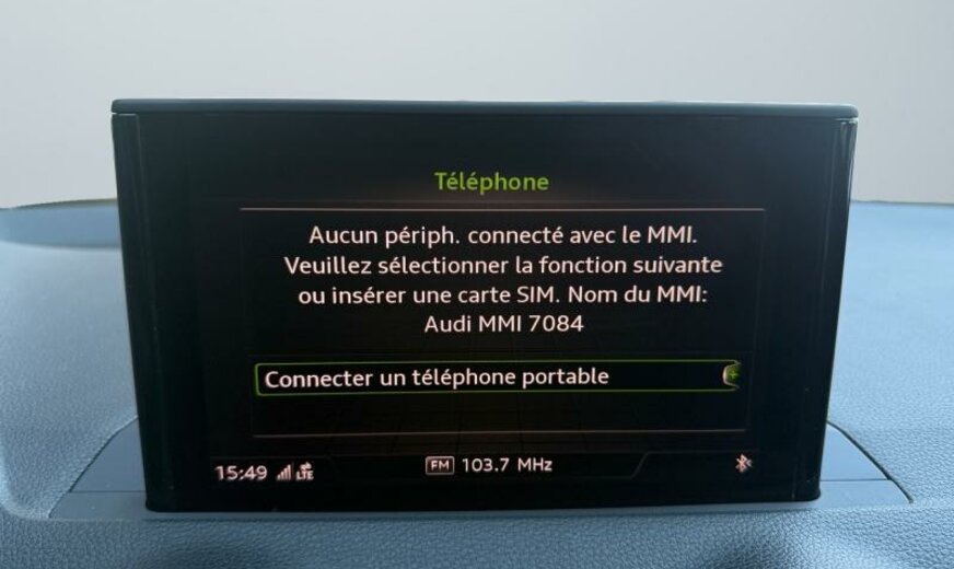 freins av 312x25, Front Assist/fonction freinage d\\\'urgence City pre sense front , liquide de refroidissement R1234YF, freins ar 272x10, enjoliveurs bas de caisse aluminium éclairés avec monogramme “S-Line”, protection des piétons, pare-brise avec bande de couleur, 8 haut-parleurs, système lave-phares, sièges av Sport, siège passager réglable en hauteur, garniture pavillon noir, ceintures de sécurité avec contact électrique dans la boucle, système d\\\'information conducteur monochrome, Ambition, 1395 cc 1,4 L 110 KW, roues av motrices traction , barre stabilisatrice av 24 mm, Audi Drive Select, JANTES 7 J X 18 ALU, Audi Connect, encarts décoratifs en aluminium brossé, look aluminium, suspension confort avec régulation électronique de l\\\'amortissement, norme anti-pollution Euro 6 Plus, peinture complète pare-chocs, passages de roue et bas de caisse , 2 couches nacrée