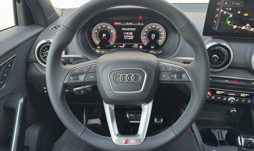 assistant de conduite, freins av 288x25, liquide de refroidissement R1234YF, freins ar 272x10, enjoliveurs bas de caisse aluminium éclairés avec monogramme \\S-Line\\, protection des piétons, pare-brise avec bande de couleur, caméra av, radio avec récepteur numérique, sièges av Sport, siège passager réglable en hauteur, garniture pavillon noir, ceintures de sécurité avec contact électrique dans la boucle, appuis lombaires av réglables électrique, accoudoir central av, systèmes de sécurité étendu Pre Sense Basic , 1498 CC 110 KW, roues av motrices traction , barre stabilisatrice av 24 mm, Audi Drive Select, assistant de trajectoire avec assistant de files, JANTES 7 J X 18 ALU, Audi Music Interface, Audi connect appel d\\'urgence service avec contrôle du véhicule, look aluminium, suspension sport, pack brillance noir avec anneaux Audi et monogrammes noirs, réservoir à charbon actif EVAP , pack S-Line Exterieur, pédalier Sport, 2 couches nacrée