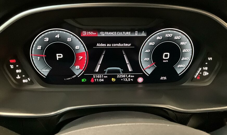 6Y6Y Gris Daytone Nacré \r\nEI Noir-Noir-Gris Roche/Noir-Noir/Noir/Noir \r\nPAQ Désélection de l\\\'avertisseur de changement de voie 7Y1 \r\nPHM Projecteurs à LED et blocs de feux arrière à LED \r\nPNB MMI Navigation plus \r\nWBS Pack Premium \r\nWQS Intérieur S line \r\n1JC Châssis sport \r\n0VB Documentation de bord en français \r\n1XW Volant cuir en style à 3 branches avec multifonction Plus \r\n4L6 Rétroviseur intérieur à réglage jour/nuit automatique, sans cadre \r\n6XE Rétros ext. réglables, dégivrants et rabatt. élec., y compris abaiss. auto du rétroviseur côté passager avant \r\n7HC Accoudoir des portières en similicuir \r\n7X2 Système d\\\'aide au stationnement Plus \r\nC38 Autorisation de circulation, supplément \r\nEL5 Audi connect Remote Control \r\nKA2 Caméra de recul \r\nN1P Combinaison cuir/similicuir mono.pur550 S line \r\nQL5 Vitrage Privacy glaces assombries \r\nQQ1 Pack Éclairage ambiance \r\nSA6 Modèle particulier 1 \r\nUI2 Audi smartphone interface