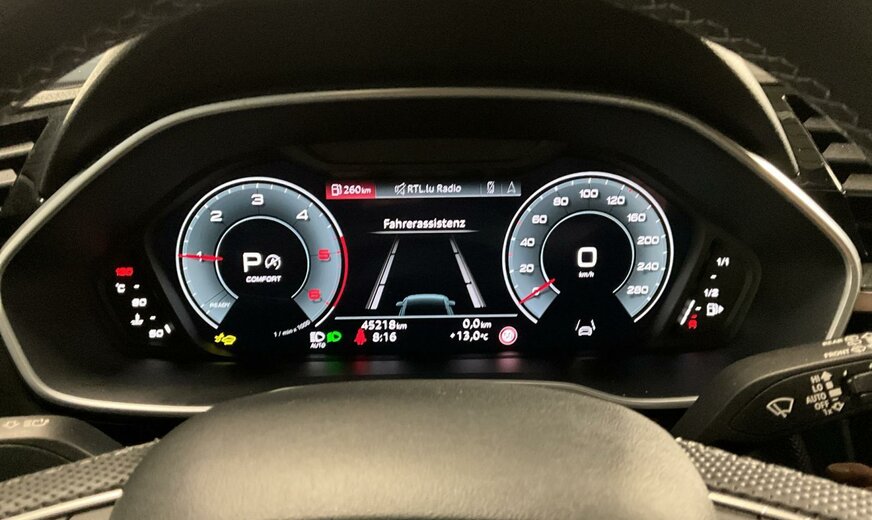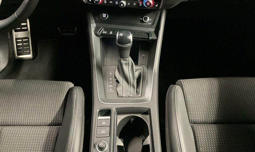 2Y2YBlanc Glacier Métallisé\r\nEINoir-Noir-Gris Roche/Noir-Noir/Noir/Noir\r\nPCEPack Assistance\r\nPNBMMI Navigation plus\r\nPXCPhares Matrix LED avec bloc de feux AR à LED, clignotants dynamiques AV et AR, avec lave-projecteurs\r\nWDQPack Premium\r\nWQSIntérieur S line\r\n1JCTrains roulants sport\r\n1T3Trousse de secours avec triangle de présignalisation\r\n1Z1Augmentation du premier remplissage en carburant de série\r\n4UFAirbags à l\\'avant, airbag du passager avant désactivable\r\n6E3Accoudoir central confort à l\\'avant\r\n7K1Système de contrôle de l\\'état des pneus\r\n7W1Audi pre sense basic\r\nEL5Audi connect Remote Control\r\nUH2Hold assist\r\n2JDPare-chocs S line en peinture intégrale teinte du véhicule \r\n2Z0Suppression du nom de modèle et du monogramme puissance/technologie\r\n3PBSiège du conducteur réglable électriquement\r\n4I3Clé confort\r\n4X4Airbags latéraux à l\\'arrière\r\n5KRBanquette arrière Plus avec accoudoir central et porte-gobelets\r\n5ZCAppuie-tête variables pour les sièges avant\r\n6XERétros ext. réglables, dégivrants et rabatt. élec., y compris abaiss. auto du rétroviseur côté passager avant\r\n7HCAccoudoir des portières en similicuir\r\n7P1Appui lombaire 4 voies pour les sièges avant\r\n9S9Audi virtual cockpit plus 12,3\\ \r\n9VDAudi sound system 10 haut-parleurs+1 subwoofer, 180W \r\nC60Autorisation de circulation, supplément\r\nKA2Caméra de recul\r\nKH5Climatisation automatique confort 3 zones\r\nN7VCombinaison tissu Sprint/ similicuir mono.pur550 S line\r\nQJ1Style aluminium à l\\'intérieur\r\nQL5Vitrage Privacy glaces assombries \r\nQQ1Pack Ãclairage ambiance\r\nV72Jantes en aluminium coulé en style à 20 branches en V, Gris Contrasté part. polies, 7J x 19 avec pneus 235/50 R19