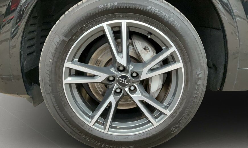 0E0ENoir Mythe Métallisé\r\nEINoir-Noir-Gris Roche/Noir-Noir/Noir/Noir\r\nPCNPack Assistance Tour\r\nPXCProjecteurs Matrix LED et blocs de feux arrière à LED et lave-projecteurs\r\nWDQPack Business plus\r\nWQSIntérieur S line\r\n7X2Système d\\'aide au stationnement Plus\r\n1D8Pré-équipement pour dispositif d\\'attelage\r\n3S2Barres de toit Noir avec détection de galerie porte-bagages\r\n40SJantes en alliage léger, en style 5 branches en V, Gris Graphite, tournées brillantes, 8,0J x 19, pneus 235/55 R19\r\n4A3Chauffage de siège à l\\'avant\r\n4L6Rétroviseur intérieur à réglage jour/nuit automatique\r\n4ZDPack Style Noir\r\n5TGInserts décoratifs en aluminium Mat Brossé\r\n6XKRétroviseurs extérieurs réglables, dégivrants et rabattables électriq., réglage jour/nuit autom. des 2 côtés\r\n7UGMMI Navigation plus avec MMI touch\r\n9JEInterface de chargement USB pour les passagers arrière\r\n9VDAudi sound system\r\n9ZVAudi phone box light\r\nIT3Audi connect Navigation Infotainment\r\nIU1Audi smartphone interface\r\nKA2Caméra de recul\r\nN7VCombinaison tissu Séquence/cuir\r\nQL5Vitrage Privacy glaces assombries \r\nUH2Hold assist