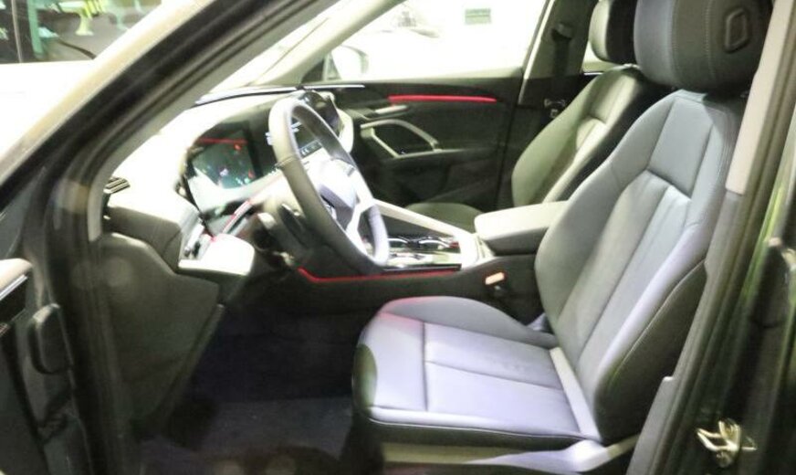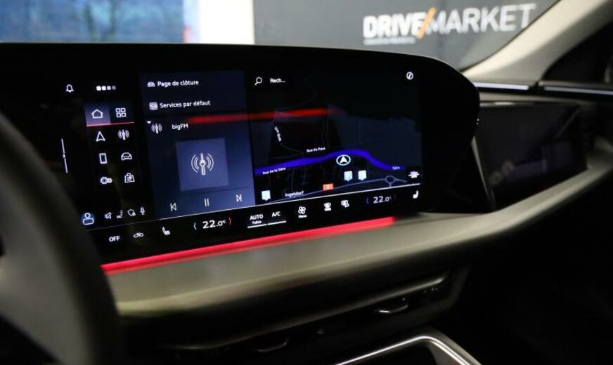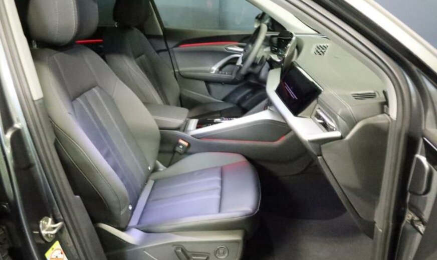 Audi Connect Notruf Service, capteur de présence aux places av/ar, chauffage supplémentaire, Audi Connect clé, display passager, radio avec récepteur numérique, Audi Phone Box, aide au parking plus avec indicateur de distance, système lave-phares, Akustik Fahrzeug-Warnsystem, éléments intérieurs en simili-cuir, caméras périphériques, enjoliveurs bas de caisse av en aluminium et éclairés, tableau de bord supérieur noir avec coutures contrastées, pré-équipement pour attache-remorque, ouverture et fermeture confort du hayon, Front Assist avec freinage d\\'urgence ar pour piétons, clavier noir haptique, limitateur de vitesse, appuis lombaires av réglables électrique, 1968 cc 2,0 L 150 KW, AWD, assistant de vitesse adaptatif, 235/55 R 19 ..W, JANTES 8 J X 19 ALU, encarts décoratifs aluminium argent mat, freins à disque av 360x34, galerie de pavillon look aluminium, reconnaissance de présence à l\\'arrière, Hatchback Berline , S-Line extérieur, transmission hybride M-HEV, 2 couches nacrée