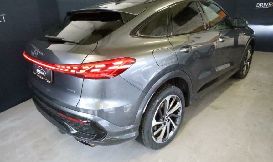 Audi Connect Notruf Service, capteur de présence aux places av/ar, pack vide-poches, Audi Connect clé, display passager, radio avec récepteur numérique, Audi Phone Box, aide au parking plus avec indicateur de distance, système lave-phares, Akustik Fahrzeug-Warnsystem, sièges av Sport, caméras périphériques, enjoliveurs bas de caisse av en aluminium et éclairés avec monogramme \\S\\, tableau de bord supérieur noir avec coutures contrastées, volant sport en cuir à 3 branches avec méplats sup/inf, pédalier Sport, garniture pavillon noir, ouverture et fermeture confort du hayon, embout échappement noir, siège conducteur et rétroviseurs avec mémoire, Front Assist avec freinage d\\'urgence ar pour piétons, clavier noir haptique, limitateur de vitesse, portes av avec projection du logo, appuis lombaires av réglables électrique, 1984 CC 150 KW, AWD, assistant de vitesse adaptatif, 8 J x 20 Alu, encarts décoratifs aluminium mat avec relief linéaire anthracite, galerie de pavillon noire, reconnaissance de présence à l\\'arrière, Liftback Sportback , S-Line extérieur, pack Exterieur noir, transmission hybride M-HEV, 2 couches nacrée