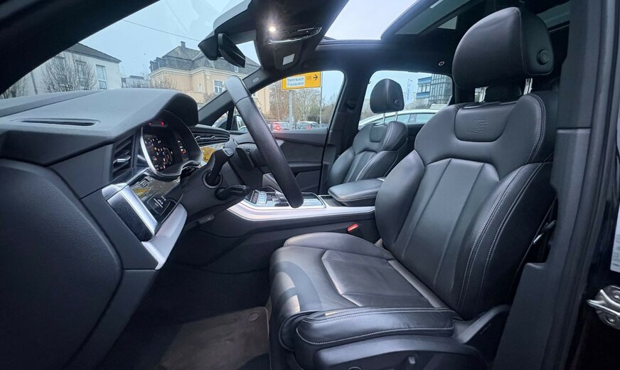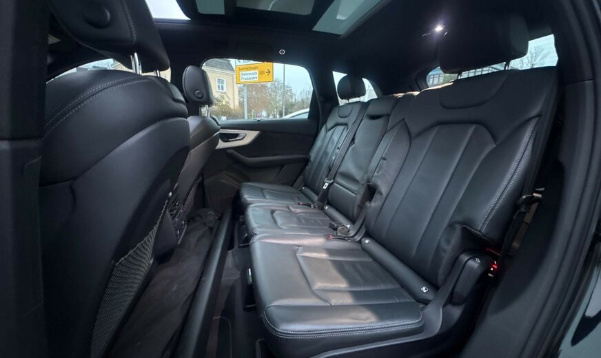 3.Sitzreihe, Einzelsitze klappbar (2 Sitzplätze), Ambiente-Beleuchtung, Assistenz-Paket Tour, Audi Smartphone Interface, Ausstattungs-Paket: S line Sport / Plus, AuÃenspiegel elektr. verstell-, heiz- und anklappbar, mit Memory, Dachreling schwarz, Diebstahlsicherung für Räder (Felgenschlösser), Fahrassistenz-System: Spurwechselassistent (Side Assist) inkl. Audi pre sense rear, Fahrwerk (adaptive air suspension), Head-up-Display, Lenkrad heizbar (Leder - 3-Speichen) mit Multifunktion plus, LM-Felgen 9x20 (10-Speichen, Stern-Design, graphitgrau, glanzgedreht), Matrix-LED-Scheinwerfer, Metallic-Lackierung, Optik-Paket schwarz, Panoramadach vorn elektrisch, hinten fest, Rückfahrkamera, Seitenairbag hinten, Servoschliessung für Türen, Sitzbezug / Polsterung: Leder Valcona mit Logo-Prägung in Vordersitzlehnen, Sitze vorn elektr. verstellbar (links mit Memory), Sonnenschutzrollo an Heckscheibe und Seitenscheibe mech., Sperrdifferential