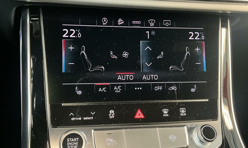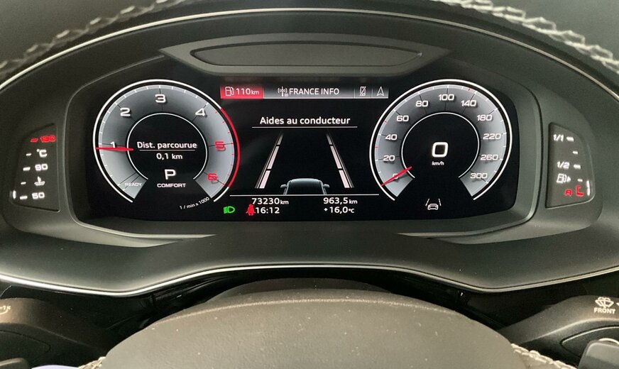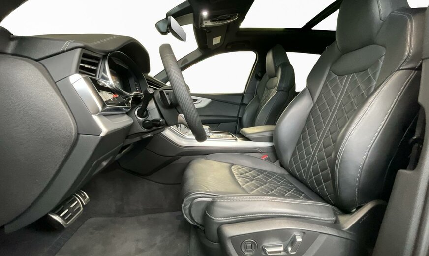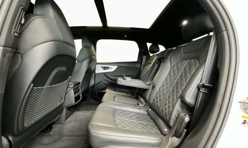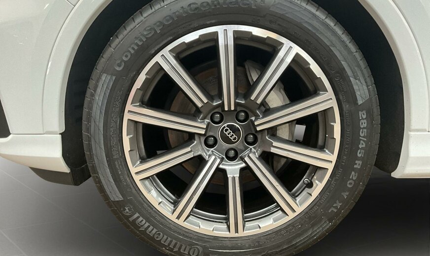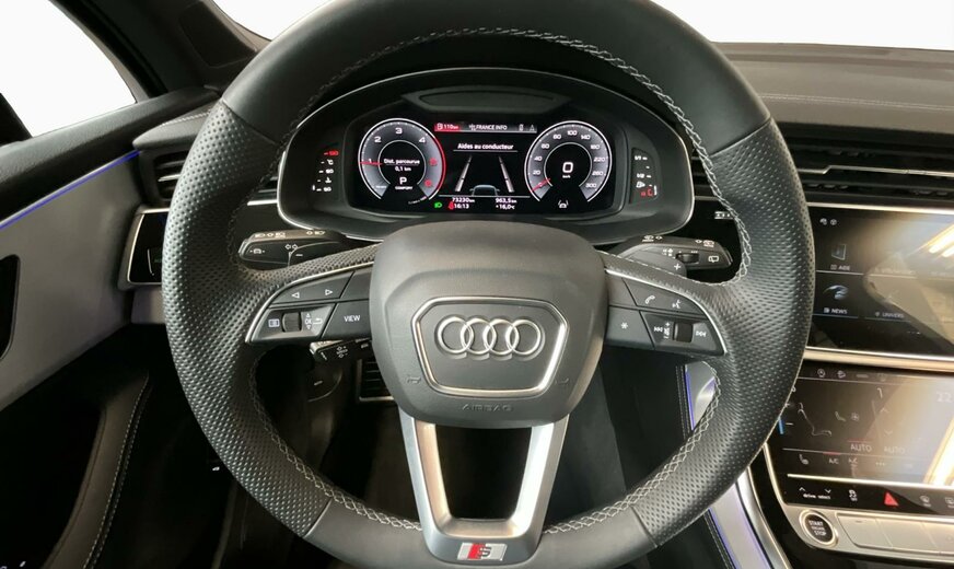 2Y2YBlanc Glacier métallisé\r\nEINoir-Noir-Gris Roche/Noir-Noir/Noir/Noir\r\nPCCPack Assistance Tour\r\nPCMPack d\\'assistance en ville\r\nPG3Clé confort avec dispositif de sécurité Safe et alarme antivol\r\nPV1Sièges avant réglables électriquement\r\nPXBProjecteurs Matrix LED HD avec éclairage laser Audi, blocs de feux arrière à LED et lave-projecteurs\r\nWDQPack Premium\r\nWQSS line pack sport\r\n2MAadaptive air suspension sport\r\nKA2Caméra de recul\r\n0M5Réservoir à carburant 85 litres \r\n0N5Système de direction intégrale\r\n1D3Dispositif d\\'attelage\r\n1XPVolant cuir sport en style à 3 branches avec multifonction plus et palettes y compris chauffage de volant\r\n3GNSystème de rails avec kit de fixation\r\n3S2Barres de toit noires\r\n4A4Sièges chauffants à l\\'avant et à l\\'arrière\r\n4ZPAnneaux Audi et monogrammes en Noir Brillant\r\n5KABanquette arrière plus\r\n6XKRétroviseur extérieur réglable, dégivrant et rabattable électriquement, à réglage jour/nuit autom. des 2 côtés\r\n7HQÉléments intérieurs supérieurs avec coutures contrastées et éléments intérieurs inférieurs en similicuir\r\n9AEClimatiseur automatique confort 4 zones\r\n9S9Audi virtual cockpit plus\r\n9VSBang Olufsen Premium Sound System avec son 3D\r\nF06Jantes alu coulé en style étoile à 10 branches, gris contrasté, part. polies, dim. 9 J x 20 avec pneus 285/45 R 20\r\nN0QCuir Valcona avec surpiqûre en losange\r\nQ4QSiège sport S Plus\r\nQL5Vitrage Privacy glaces assombries \r\nQQ2Eclairage d\\'ambiance