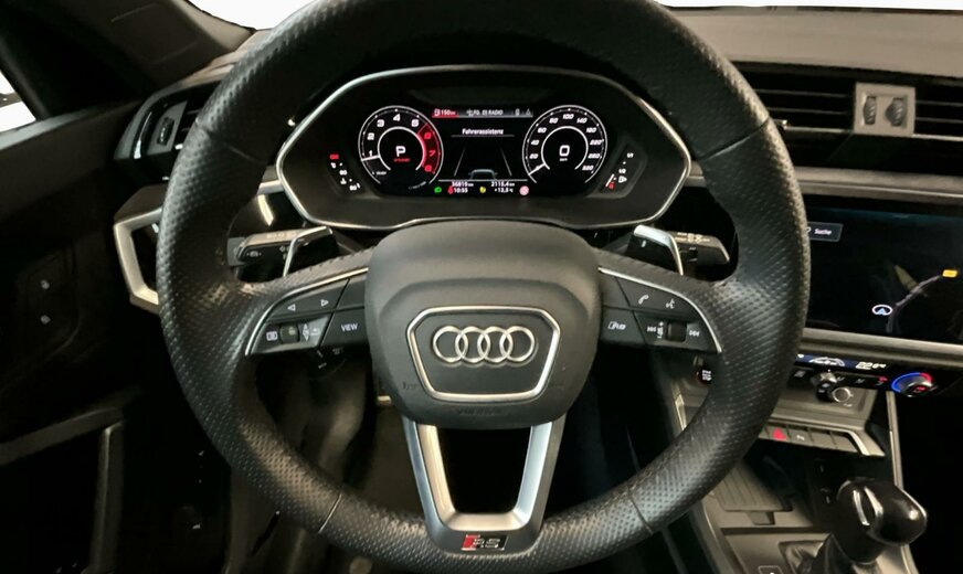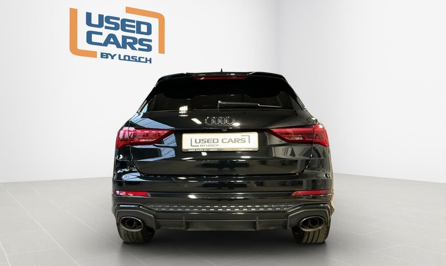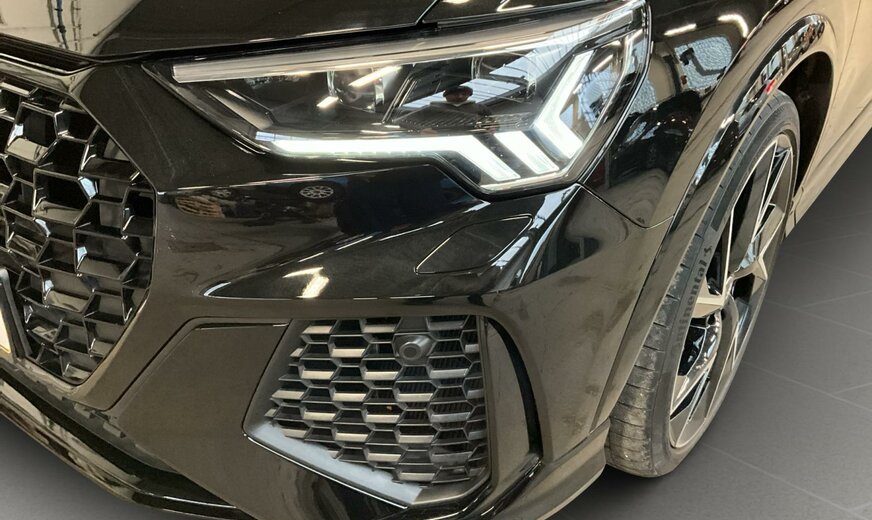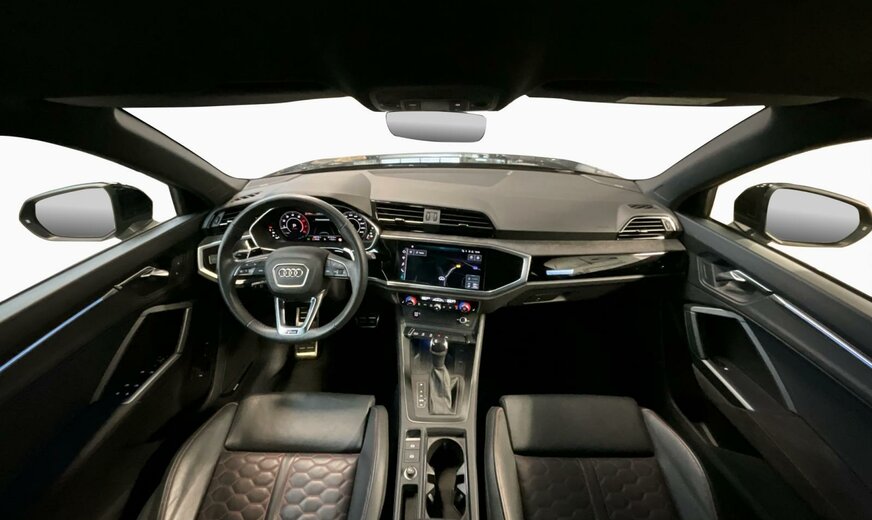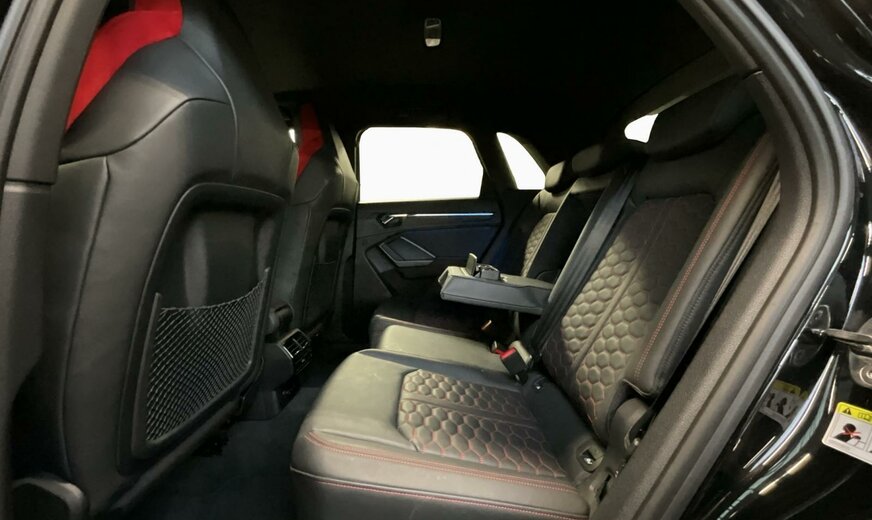 0E0E Noir Mythe Métallisé \r\nAR Noir-Noir-Rouge Express /Noir-Noir/Noir/Noir \r\nPAH Pack Style Noir Brillant \r\nPCE Pack Assistance \r\nPDE Châssis avec régulation adaptativey compris Audi drive select \r\nPNB MMI Navigation plus \r\nPS6 Sièges sport RS à l\\\'avant en cuir nappa fin avec surpiqûres alvéolées \r\nPXC Phares Matrix LED avec bloc de feux AR à LED, clignotants dynamiques AV et AR, avec lave-projecteurs \r\n0P6 Système d\\\'échappement sport \r\n1PE Boulons de roue antivol avec détection de desserrage de roue \r\n1XX Volant cuir en style à 3 branches avec multifonction Plus et palettes \r\n2Z0 Suppression du nom de modèle et du monogramme puissance/technologie \r\n3L4 Siège du conducteur avec fonction mémoire, y compris sièges avant à réglage électrique \r\n4A3 Chauffage des sièges à l\\\'avant \r\n4E7 Hayon à ouverture et fermeture électriques \r\n4H5 Sécurité enfants à commande électrique \r\n4I3 Clé confort \r\n4L6 Rétroviseur intérieur à réglage jour/nuit automatique, sans cadre \r\n4ZP Anneaux Audi et monogrammes en Noir \r\n53B Jantes en alliage léger 8,5J x 21, style trigone à 5 bras, Noir Anthr., tournées brillantes, pneus 255/35 R21 \r\n5TL Inserts décoratifs en piano laqué Noir Audi exclusive \r\n6FA Boîtier des rétroviseurs extérieurs dans la teinte du véhicule \r\n6XL Rétros ext. réglables, dégivrants et rabatt. électr., à réglage jour/nuit auto. des 2 côtés, avec fonction mémoire \r\n7B6 Prise 12 volts et 2 x USB-C pour les passagers arrière \r\n9S8 Audi virtual cockpit plus 12.3\\\", design spécifique pour RS \r\n9VS SONOS Premium Sound System avec son 3D 15 haut-parleurs+1 subwoofer, 680W \r\n9ZE Audi phone box \r\nEL5 Audi connect Remote Control \r\nGB1 Soutien LTE pour Audi phone box \r\nKA6 Caméras périmétriques 360° \r\nQE1 Pack vide-poches et coffre à bagages \r\nQL5 Vitrage Privacy glaces assombries \r\nQQ2 Pack Éclairage de contour/ambiance, multicolore \r\nUI2 Audi smartphone interface