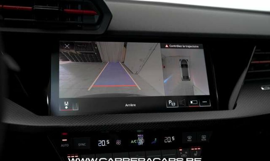 * Equipements :Sièges RS sport chauffants, réglages électriques + lombaires, Volant RS multifonctions, Toit ouvrant panoramique, Éclairage d’ambiance LED, Climatisation automatique 3 zones, Vitres arrière surteintées, Audi Virtual Cockpit Plus (affichage RS), MMI Navigation Plus avec écran tactile, Système audio Bang & Olufsen 3D, Audi Smartphone Interface, Chargeur à induction + USB-C, Régulateur de vitesse adaptatif, Caméra de recul + radars AV/AR, Feux Matrix LED adaptatifs, Alerte de franchissement de ligne, Détecteurs d’angle mort + trafic arrière, Assistance au stationnement avec affichage dynamique, Pack extérieur noir + diffuseur RS, Calandre nid d’abeille noir RS, Freins RS avec étriers rouge, Audi Drive Select, Echappement sport