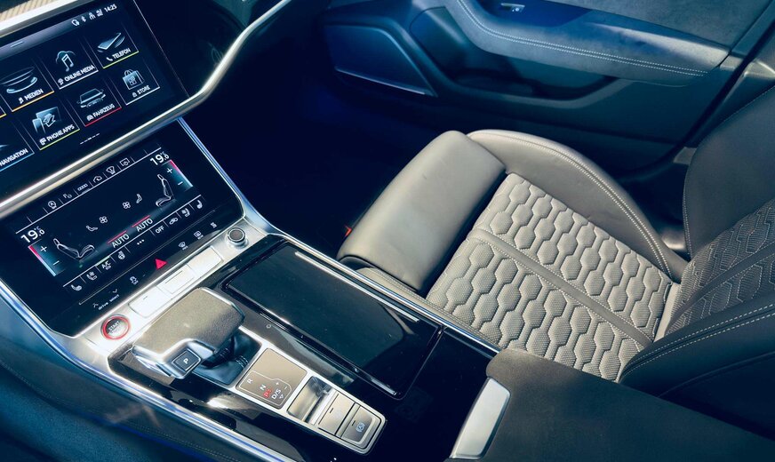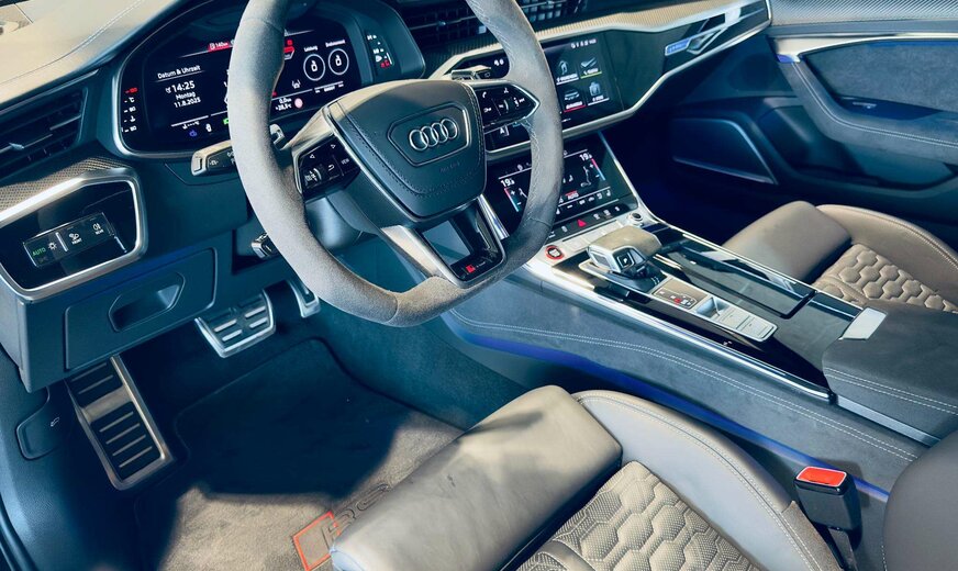 RS Dynamic Plus Package, Black Optic Plus Package, Grey Design Plus Package, Assistance Plus Package avec Remote Parking Assistant Plus, RS Sport Suspension Plus avec Dynamic Ride Control (DRC), Ãchappement Sport RS, RS Ceramic Brake System, Distance Warning, Lane Departure Warning, Audi Pre Sense avec Turn-Off Assist & Swerve Assist, Side Assist, Traffic Sign Speed Warning, Hazard Alerts, Fatigue Warning, Distraction Warning, Trailer Recognition, Background Lighting, Home Link, Door Soft Close, Auxiliary Heating, Audi Drive Select, Auto Start & Stop, Keyless-Go avec Audi Connect Key, Galerie de toit, Toit ouvrant panoramique avec store électrique, Attache-remorque rétractable, Hayon électrique Open & Close, Trappe à ski, Park Assist, Parktronic avant et arrière avec caméra 360° incl. Manoeuvre Assist & Rear Cross-Traffic Assist, HD Matrix LED & Audi Laser Light, High Beam Assist, Capteur de pluie, Rétroviseurs électriques rabattables, Sièges Sport RS électriques à mémoire chauffants et ventilés en cuir, Sièges arrière chauffants, Stores fenêtres arrière, Head-Up Display, Virtual Cockpit avec RS-Layout, Volant multifonctions à réglage électrique et chauffant en alcantara, Palettes au volant, Adaptive Cruise Control, Bluetooth, Navigation, Phone Apps, Phone Box, Online Media, Radio touch DAB / USB-C / BT audio / WLan, Bang & Olufsen Advanced 3D Sound System, Isofix+