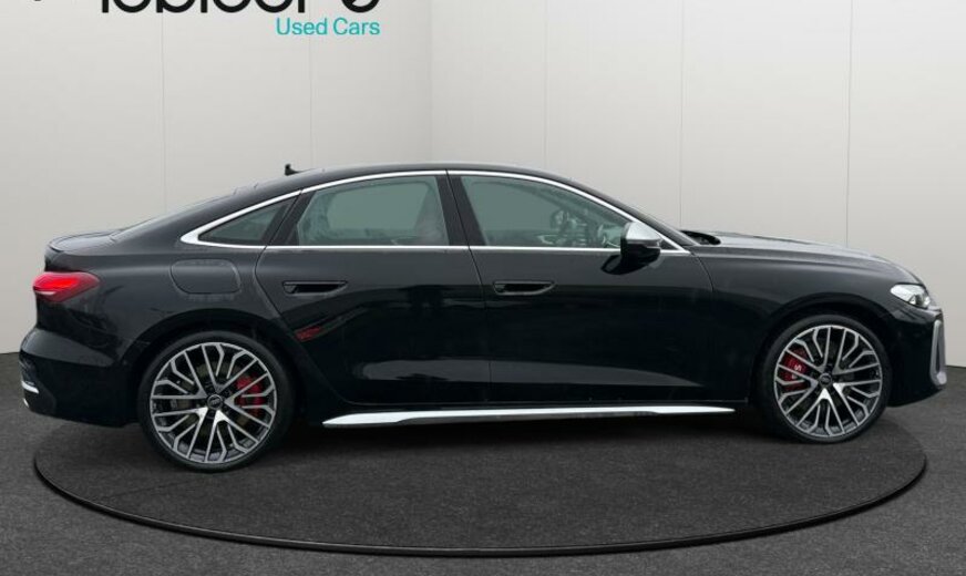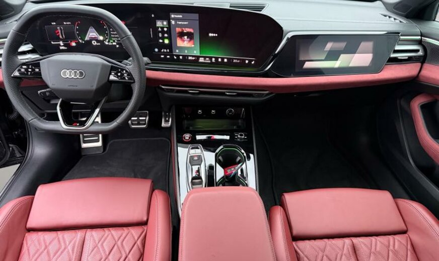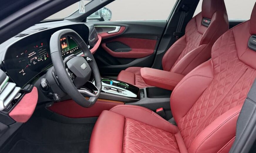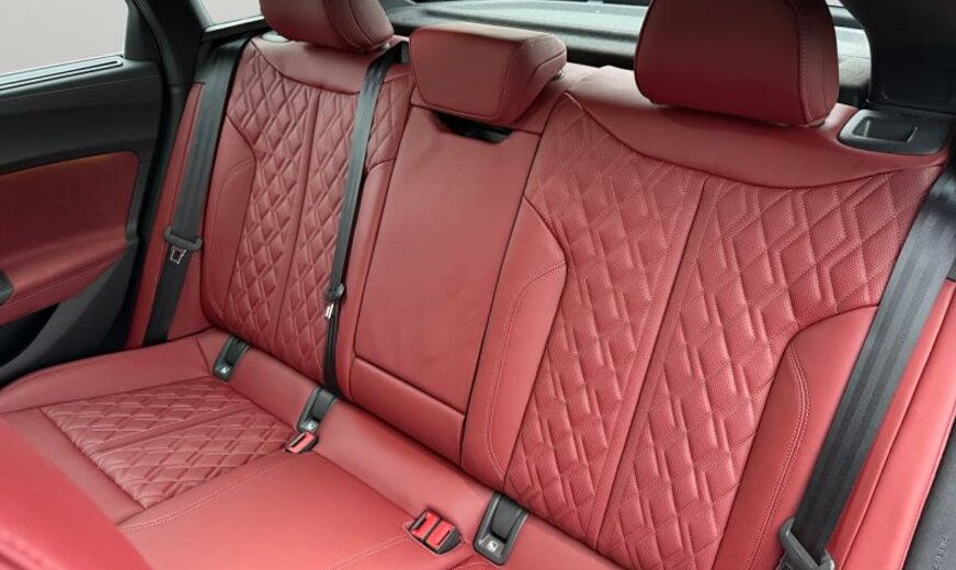 réservoir carburant 56 L, pack brillance, caméras périphériques, glace du rétroviseur conducteur asphérique/passager asphérique, éléments intérieurs supérieur/inférieur avec coutures contrastées, vitres feuilletées/isolantes/acoustiques, Audi Connect clé, poignées de porte dans la couleur du véhicule, radio avec récepteur numérique, boîtier des rétroviseurs en aluminium, système lave-phares, sièges av S-Sport, fixation siège enfant avant Top Tether, garnissage cuir Nappa fin, garniture pavillon noir, pédalier Sport, filet de séparation, enjoliveurs bas de caisse aluminium éclairés avec monogramme \\\"S-Line\\\", siège conducteur et rétroviseurs avec mémoire, clavier noir haptique, limitateur de vitesse, 2995 cc 3,0 L 270 kW, différentiel sport, freins av 360x34 rouge S5 , freins ar 350x28 rouge, suspension sport, avertissement croisement du trafic, Front Assist avec freinage d\\\'urgence ar pour piétons, 245/35 R 20 .. Y, JANTES 8,5 JX 20 ALU, kit réparation pneus, encarts décoratifs en carbone Atlas, transmission hybride M-HEV, boulons de roue avec antivol, becquet ar, look aluminium, reconnaissance de présence à l\\\'arrière, générateur bruit moteur, 4 portes Berline , pare-soleil portes ar à enrouleur, display passager