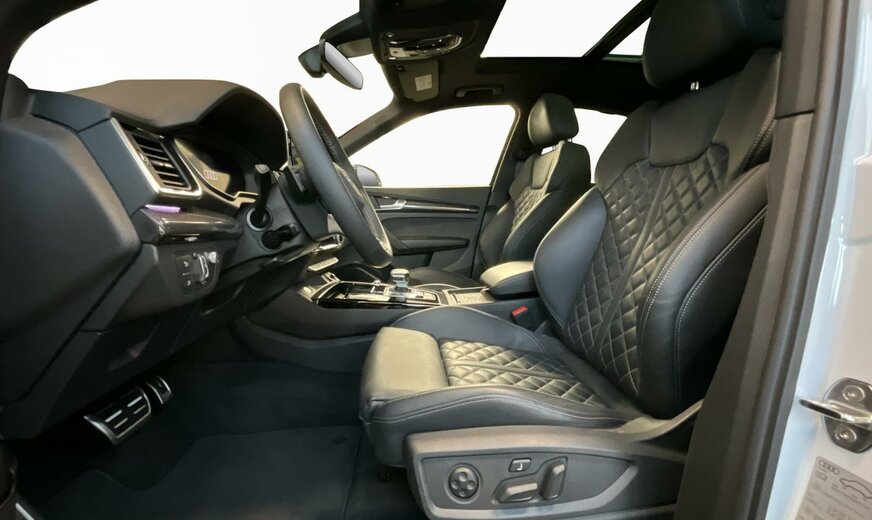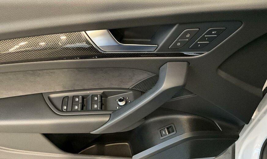 2Y2Y Blanc Glacier Métallisé \r\nEI Noir-Noir-Gris Roche/Noir-Noir/Noir/Noir \r\nPC7 Étriers de frein peints en Rouge pour modèle S \r\nPCN Pack Assistance Tour \r\nPCZ Pack Assistance en ville avec pack Assistance au stationnement \r\nPG2 Alarme antivol \r\nPV3 Sièges avant à réglage électrique avec fonction mémoire pour le siège du conducteur et les rétro. extérieurs \r\nPXC Projecteurs Matrix LED et blocs de feux arrière à LED et lave-projecteurs \r\nWAI Pack Premium \r\n1D4 Dispositif d\\\'attelage \r\n1XP Volant de direction cuir en style à 3 branches avec multifonction Plus et chauffage de volant \r\n2MB adaptive air suspension avec réglage spécifique pour S \r\n3FU Toit coulissant panoramique \r\n3NS Banquette arrière Plus \r\n3S2 Barres de toit Noir avec détection de galerie porte-bagages \r\n3Y4 Stores arrière manuels pour les glaces latérales arrière \r\n45I Jantes all. lég., st. \\\"Offset\\\" 5 br. en V, Noir Anthr., tour. br., 8,5J x 21, pneus 255/40 R21, Audi Sport GmbH \r\n4A4 Chauffage de siège à l\\\'avant et à l\\\'arrière \r\n4GR Pare-brise à vitrage athermique dégivrant et acoustique, dégivrage télécommandé \r\n4L6 Rétroviseur intérieur à réglage jour/nuit automatique \r\n4M9 Porte-gobelets climatisé \r\n4X4 Airbags latéraux à l\\\'arrière \r\n4ZP Pack Style Noir Plus \r\n5MK Inserts décoratifs en carbone Atlas \r\n5XF Pare-soleil du côté conducteur et passager avant, extensibles \r\n6FQ Boîtier des rétroviseurs extérieurs en carbone \r\n7E0 Sans accumulateur de chaleur/chauffage d\\\'appoint \r\n7UG MMI Navigation plus avec MMI touch \r\n8I6 Appui lombaire à réglage pneumatique avec fonction massage pour sièges avant \r\n9AQ Climatiseur automatique confort 3 zones \r\n9JE Interface de chargement USB pour les passagers arrière \r\n9M9 Chauffage et ventilation stationnaires \r\n9S9 Audi virtual cockpit plus \r\n9VS Bang Olufsen Premium Sound System avec son 3D \r\n9ZE Audi phone box \r\nC50 Autorisation de circulation, supplément \r\nGB1 Soutien LTE pour Audi phone box \r\nIT3 Audi connect Navigation Infotainment \r\nIU1 Audi smartphone interface \r\nKS1 Affichage tête haute \r\nN2R Cuir nappa fin avec estampage S \r\nQE1 Pack Vide-poches et coffre à bagages \r\nQL5 Vitrage Privacy glaces assombries \r\nQQ2 Pack Éclairage d\\\'ambiance Plus \r\nS7K Code de contrôle \r\nUH2 Hold assist \r\nVW5 Vitrage acoustique pour les glaces de portes avant