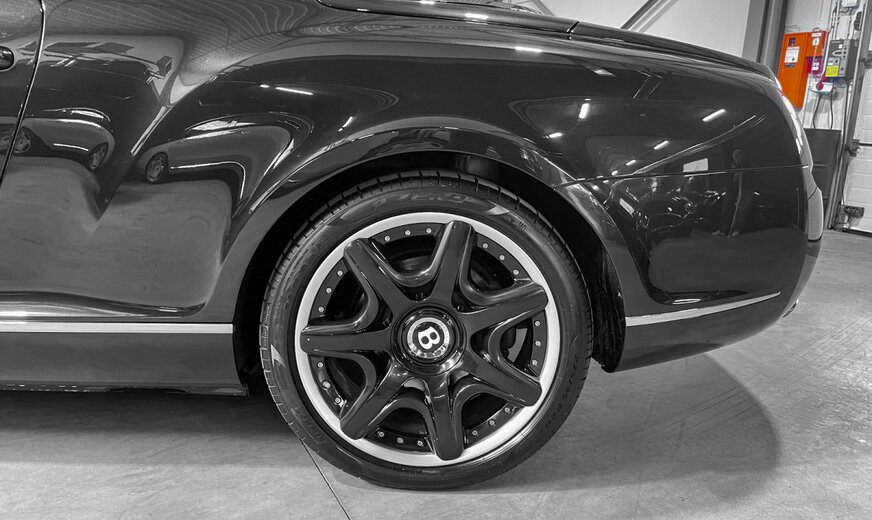 * Jantes : Bentley âMulti-Spokeâ (multi-branches avec boulonnerie apparente, signature emblématique de la marque)