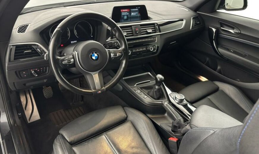 norme anti-pollution RDE, Connected Drive Services, liquide de refroidissement R1234YF, pack éclairage, garnissage pavillon anthracite, sièges av Sport, appuis-tête ar rabattables, 5 places, pack de rangement, accoudoir av coulissant, combinaison d\\\'instruments étendue, Teleservices, 1499 cc 1,5 L 100 KW, Servotronic, suspension M Sport, avant 7,5 J x 18 / arrière 8 J x 18 Alu gris Ferric métallisé, pneus Run Flat, Shadow Line brillant, boulons antivol de roue, pack aérodynamique M, spécifique Europe, 2 couches minérale