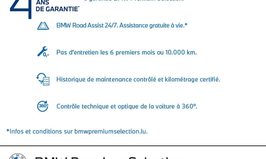 Soft Close Automatic, clé BMW Display, garnissage pavillon anthracite, encarts décoratifs en verre \\CraftedClarity\\ pour éléments intérieurs, Teleservices, sièges av M-Sport, encarts intérieurs en fibre de carbone mat, 2993 cc 3,0 L 250 KW, système de récupération, direction Integral-Active, protection des piétons active, 8/9 J X 20 ALU, Driving Assistant Professional, Active Guard, cadres de vitres Shadow Line brillant, pack chaleur confort av, mesures CO2 étendues, pack aérodynamique M, AWD, pneus Run Flat