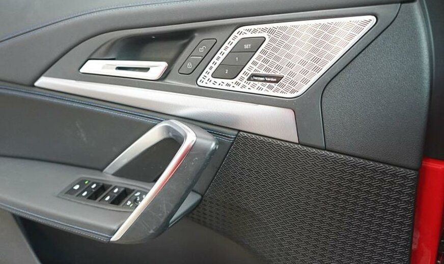 ST JAMES RED - SPECIAL REQUEST !!\r\n\r\n01EK BMW lt-alloy wheel double spoke 871M STD\r\n0230 Extra package, EU-speciifc\r\n0248 Steering wheel heater\r\n02PA Locking wheel bolt\r\n02VB Tyre pressure display\r\n02VC Tyre repair set\r\n02VF Adaptive M chassis\r\n0302 Alarm system\r\n0322 Comfort access system\r\n0337 M Sports package\r\n03AC Trailer coupling\r\n03MC Indiv.roofrailing,mirror-fin.Shadow Line\r\n0402 Panorama glass roof\r\n0413 Luggage compartment net\r\n0420 Sun protection glazing\r\n0428 Warning triangle and first aid kit\r\n0430 Interior/outside mirror with auto dip\r\n0431 Interior mirror with automatic-dip\r\n0455 Active seat for driver and front passenger\r\n045A Seat adjustment, electric, with memory\r\n0478 Child seat mount\r\n0481 Sports seat\r\n0494 Seat heating driver/passenger\r\n04KL Interior trim finisher alum.mesh effect\r\n04NR Interior camera\r\n04NW LUXURY INSTRUMENT PANEL\r\n04T2 LADEKABEL PROFESSIONAL MODE 3 \r\n04T3 Flexible Charger Mode 2 \r\n04U9 Acoustic pedestrian protection\r\n04V1 BMW ICONICSOUNDS ELECTRIC\r\n0548 Kilometre speedo\r\n0552 Adaptive LED headlight\r\n05AC High-beam assistant\r\n05AU Driving assistant professional\r\n05AV Active Guard\r\n05DN Parking assistance system Plus\r\n0610 Head-up display\r\n0654 DAB tuner\r\n0674 Hi-Fi system Harman Kardon\r\n06AE Teleservices\r\n06AF Statutory emergency call\r\n06AK Connected Drive Services\r\n06NX Storage tray wireless charging\r\n06PA Personal eSIM\r\n06U3 BMW Live operating area Professional\r\n0710 M Leather steering wheel\r\n0760 High gloss shadow line\r\n0775 Headlining anthracite\r\n07EW Option package Professional\r\n07LG Guidance Paket\r\n07LK Travel Paket\r\n07M9 Individual option high-gloss Shadow-Line