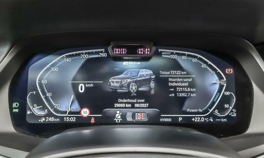 vanaf 03.22, uitlaatgasnorm Euro 6 RDE II, sluiten met Display, uitgebreide CO2 reductie, Teleservices, buitenspiegels dag/nacht automatisch, dakbekleding antraciet, zonneblind zijruiten, geluidswerend glas, comfortzetels voor, Travel Comfort System, akoestische voetgangersbescherming, scheidingsnet bagageruimte, Driving Assistant Professional, pakket kofferruimte, 2998 cc 3,0 L 210 KW benzine /81 KW elektrisch , M Sportremmen, voor 9 J x 20 / achter 10,5 J x 20 Alu orbitgrey, dakreling Individual Shadow Line, Shadow Line hoogglans ruitkaders zwart glanzend , instrumentenbord Sensatec, warmte-comfort pakket voor, binnenlijsten Alu mazeneffect donker, actieve voetgangersbescherming, M aerodynamisch pakket, AWD, EU specifiek, Run Flat banden