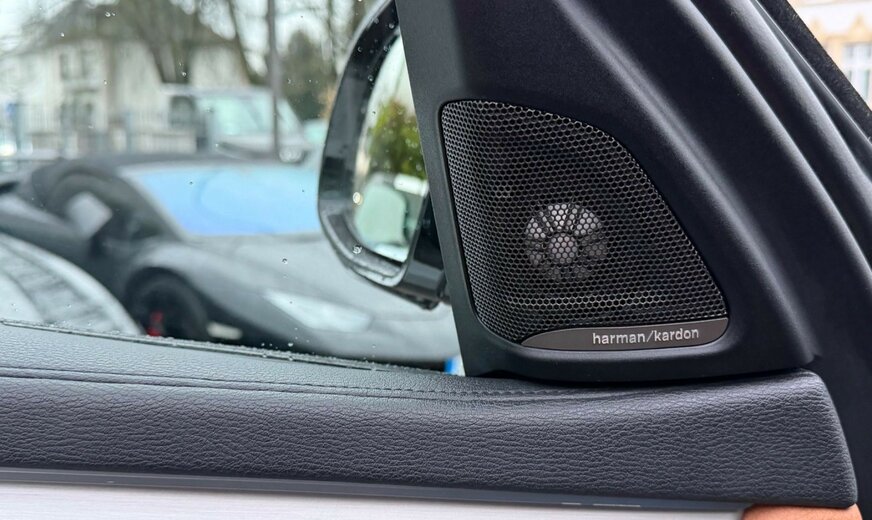Ablage-Paket, Adaptives Fahrwerks-Paket: Comfort, AuÃen-/Innenspiegel mit Abblendautomatik, AuÃenausstattung: Shadow-Line Hochglanz, Dachhimmel Anthrazit (BMW Individual), Fahrassistenz-System: Speed-Limit-Anzeige, Head-up-Display, Innenausstattung: Interieurleisten Aluminium Längsschliff fein, Instrumentenanzeige, multifunktional, Lendenwirbelstütze Sitz vorn links und rechts, elektr. verstellbar, LM-Felgen vorn/hinten: 10x20 / 11x20 (Sternspeiche 491), Metallic-Lackierung, Park-Distance-Control (PDC) vorn und hinten, Rückfahrkamera, Schiebe-/Hebedach elektrisch (Glas), Sitze vorn elektr. verstellbar (links mit Memory), Sonnenschutzverglasung (hinten abgedunkelt), Sound-System Harman-Kardon, Sportsitze vorn, Surround-Kamerasystem (Surround View)