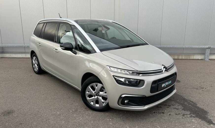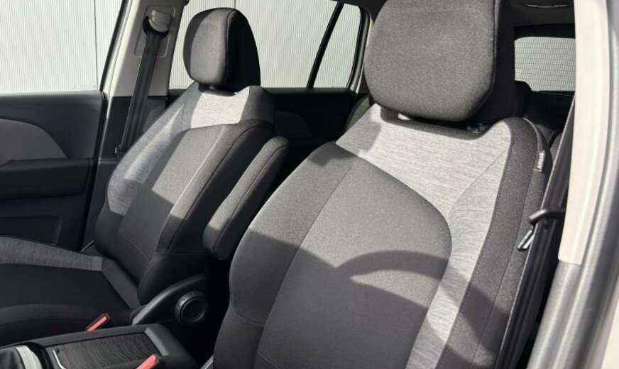 6 haut-parleurs, bras de suspension av en acier de 5 mm e1.1700 e2.75 SYM, suspension abaissée, vitres latérales acoustiques, phares antibrouillard, Display HD de 12\\\", siège passager réglable en hauteur, guide d\\\'air radiateur réglable à taille double, poignées de porte ext dans la couleur du véhicule, protection bagages, pièces av reculées, batterie 70 Ah EFBC, 1199 cc 1,2 L 96 KW HNS EB2ADTS, radiateur de 28 dm² et de 28 mm d\\\'épaisseur en aluminium, barre stabilisatrice av 23 mm, console centrale, feux de jour LED, train ar 30000 Nm, radio Connect Nav numérique, 6,5 J x 16 Alu Notos, alternateur 120 A, disques de frein ar 290 mm, roue de secours temporaire, rallonge traverse du train av, possibilité de réparation améliorée, arceaux de pavillon Grand Picasso , 7 places, Facelift