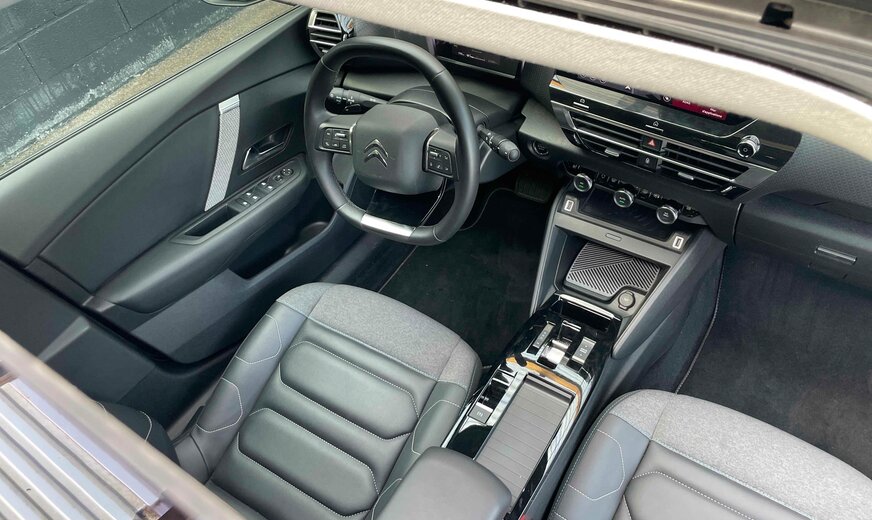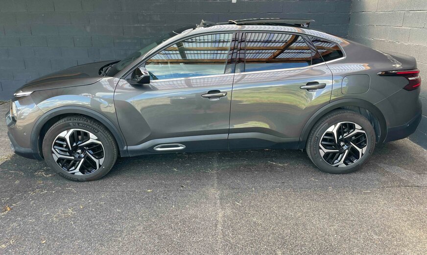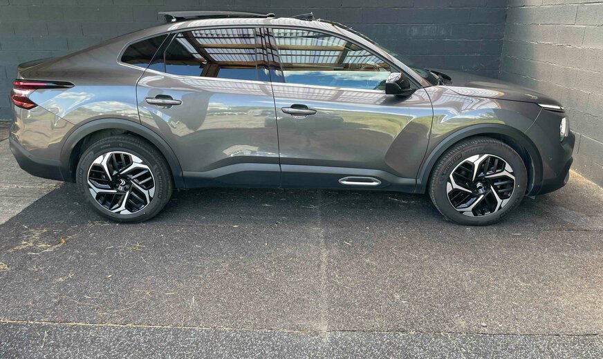 Citroën C4 CITROEN C4X 1.2PURETECH 130CV EAT8 SHINE Kilométrage : 22 400 km D.P.M.C. : 10/02/2023 Puissance : 96kW / 130CV / 7CV fiscaux Cylindrée : cm3 Boîte de vitesse : Automatique Carburant : Essence Couleur extérieure : Gris Finition intérieure : Cuir/tissu noir Carrosserie : Berline Nombre de portes : 5 Nombre de places : 5 Transmission : Avant Vitesses : 8 Cylindres : 3 Poids à vide : 1399 kg Conso. de carburant***: 5.8l/100 km (mixte) 7.3l/100 km(urbain) 4.9l/100 km(extra-urbain) CO2 émissioné***: 130 g/km (mixte) Equipements du véhicule â¢ABS/Alarme/Anti-démarrage//Anti-patinage/ESP â¢Accoudoir central AV â¢Aide au stationnement AV+AR+360°+caméra â¢Aide au stationnement Park Assist â¢Airbags â¢Banquette AR rabattable 2/3 1/3 â¢Capteur pluie â¢Capteur luminosité â¢Climatisation auto. Bi-zone â¢Direction assistée â¢Feux anti-brouillard â¢Feux de jour à LED â¢Frein de stationnement auto. â¢Fixations ISOFIX â¢Jantes alliage 18ââ â¢Hayon de coffre électrique â¢Mode ECO/SPORT â¢Multimédia : Radio -Prise USB â Bluetooth audio - AppleCarPlay â¢Ordinateur de bord avec Virtual Cockpit â¢Pare-brise chauffant â¢Phares LED avec passage auto phares-codes â¢Régulateur de vitesse avec Distance Control â¢Limiteur de vitesse â¢Rétro. ext. chauffants, réglables et rabattables élect. â¢Rétro int.J/N auto. â¢Sellerie cuir/tissu â¢Sièges chauffants â¢Système démarrage KeyLess â¢Système Lecture Tête Haute â¢Système navigation GPS Europe avec écran tactile â¢Système reconnaissance panneaux signalisation â¢Système sécurité intelligente : avertisseur de collision / avertisseur abandon de voie / alerte franchissement involontaire de ligne â¢Système Start/Stop â¢Téléphone Bluetooth â¢Tapis de sol â¢Toit ouvrant panoramique â¢Verrouillage centralisé avec ouverture/fermeture KeyLess â¢Vitres électriques â¢Volant cuir, chauffant, multifonctions, à commandes vocales / palettes Description du véhicule Véhicule 1ère main. Suivi et entretiens à jour ; Dernier entretien : 11/2023 14 954 km Garantie CONSTRUCTEUR - TVA récupérable pour les sociétés.