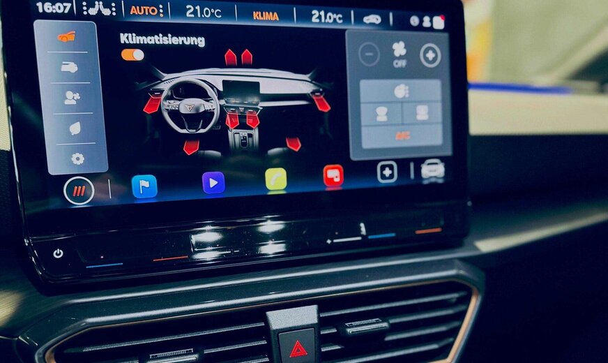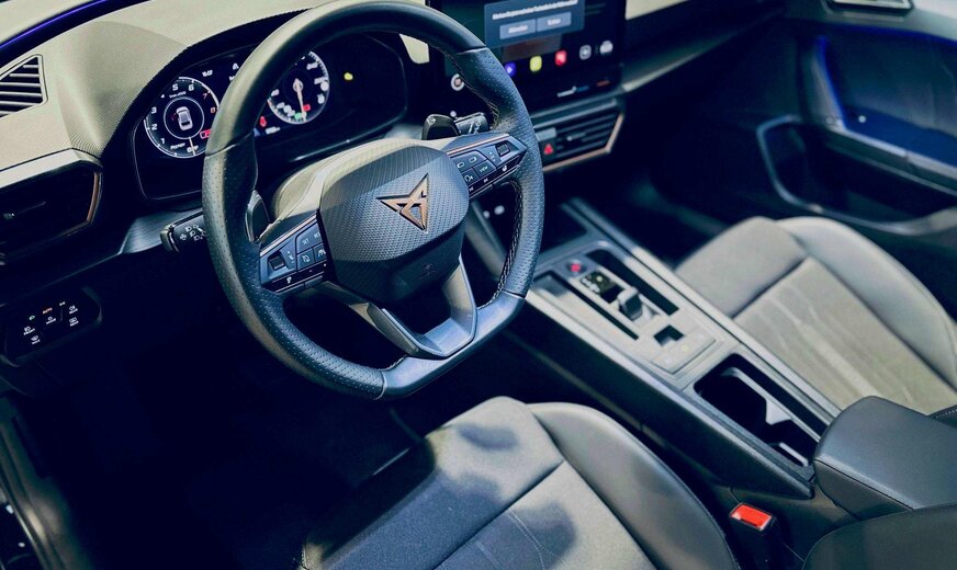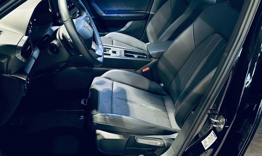 Cupra Leon Front Assist (Emergency Braking) avec Display Distance Warning & Swerve Support, Lane Assist, Side Assist, Emergency Assist, Exit Warning System, Dynamic Road Sign Display, Eco Assist, Driver Alert System, Background Lighting, Drive Profile, Auto Start & Stop, Keyless-Go, Trappe à ski, Park Assist, Parktronic avant et arrière avec caméra de recul et Rear Traffic Alert, Phares automatiques LED, High Beam Assist, Capteur de pluie, Rétroviseurs électriques rabattables, Sièges Sport chauffants en cuir et tissu, Virtual Cockpit, Volant multifonctions et chauffant en cuir, Palettes au volant, Adaptive Cruise Control avec Travel Assist, Bluetooth, Navigation, Full Link (Apple CarPlay & Android Auto), Phone Box, Radio touch DAB / WebRadio / USB-C / BT audio / WLan, Isofix+