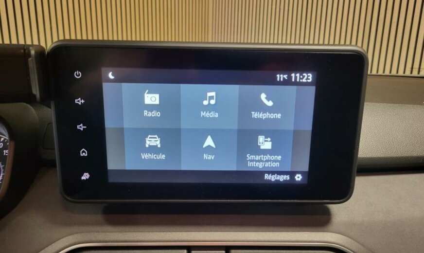 liquide de refroidissement R1234YF, vitres des portes ar et lunette ar foncé VSTLAR , écrans des rétroviseurs peints RETC REPNTC , antenne aileron de requin 02ANT , avertisseur oubli ceinture siège conducteur et banquette ar ALOUC5 , garnitures latérales du coffre avec vide-poches RANCF1 , prise de courant 12V PRIAC3 , portillon réservoir sans clé SBOUCL , tableau de bord analogique MET02 , ceintures de sécurité ar avec prétensionneurs PTCAR , Micro Hybrid HYB01 , 999 cc 1,0 L 81 KW RKMD, guide d\\\'air réglable sous le radiateur VOLPIL , colonne de direction réglable VOLRHP , frein à main électrique FPASS , ESP ESPGRL , 6,5 J x 16 Alu Mahalia RALU16^RDIF37 , roue de secours RSEC01 , système de freinage d\\\'urgence AEBS01 , code équipement E2D, galerie de pavillon BARTOI , site de production A, équipement New Brand Identity NBIDY Facelift , carrosserie renforcée 05 CHC05 , 2 couches nacrée