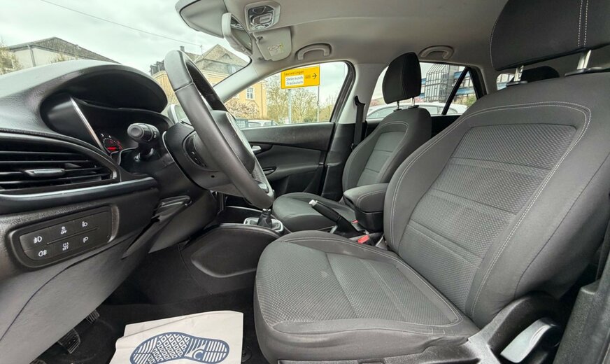Airbag Fahrer-/Beifahrerseite, Antriebs-Schlupfregelung (ASR), Audio-/Telefonbedienung am Lenkrad, Außenspiegel elektr. verstell- und heizbar, Außenspiegel Wagenfarbe, Außentemperaturanzeige, Beifahrerairbag abschaltbar, Control-Display mit TFT-Farbdisplay, Einparkhilfe hinten, Elektr. Bremskraftverteilung, Exterieurumfänge Chrom, Fahrassistenz-System: Berganfahrhilfe, Fahrassistenz-System: Bremsassistent, Fensterheber elektrisch hinten, Infotainment-System: UConnect mit MP3-Player (Touchscreen 7), Karosserie: 5-türig, Klimaautomatik, Kopf-Airbag-System vorn und hinten, Kopfstütze hinten mitte, Kopfstützen hinten, Laderaumboden verstellbar, Lenksäule (Lenkrad) verstellbar (vertikal / axial), Leuchtweitenregelung, LM-Felgen, Mobile Online Dienste UConnect Live, Motor 1,6 Ltr. - 88 kW JTDM 16V, Radioempfang digital (DAB), Reifen-Reparaturkit, Reifendruck-Kontrollsystem, Rückfahrkamera Park View, Rücksitz geteilt / klappbar (Asymmetrisch), Seitenairbag vorn, Seitenscheiben hinten und Heckscheibe abgedunkelt, Sicht-Paket, Sitz vorn links höhenverstellbar, Sitzbezug / Polsterung: Stoff, Smartphone Schnittstelle (Apple CarPlay & Android Auto), Start/Stop-Anlage, Steckdose (12V-Anschluß) in Mittelkonsole, Stoßfänger Wagenfarbe, Tagfahrlicht LED, Tasche an Sitz vorn rechts, Türgriffe außen verchromt, Zusatzheizung