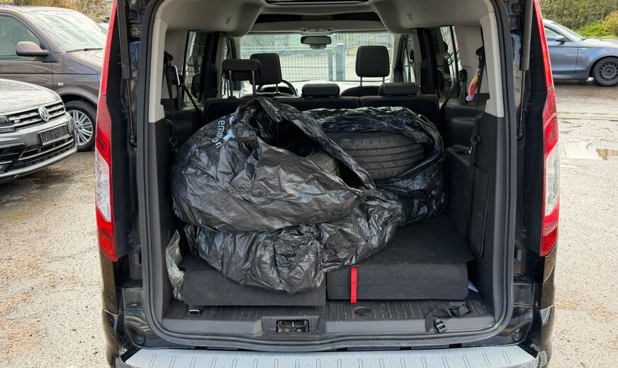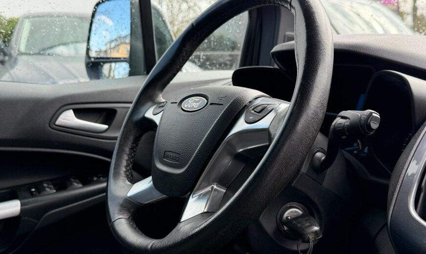 2.Sitzreihe mit Sitzbank, 3. Bremsleuchte, Ablage im Dachhimmel Fahrerhaus, Antischlupfregelung (ASR), Audiosystem: Radio/CD-Player mit Ford SYNC (Monochrom / grafikfähig), AuÃenspiegel elektr. anklappbar, AuÃenspiegel Wagenfarbe, Batterie 60 Ah, Bord-/Verbrauchscomputer, Dachreling (Aluminium), Dimmer Instrumentenbeleuchtung, Economy-Paket, Elektr. Bremskraftverteilung (EBD), Fahrassistenz-System: Active City Stop, Fahrassistenz-System: Bergabfahr-Assistent, Fahrassistenz-System: Berganfahr-Assistent (Hill-Holder), Fahrassistenz-System: Notbrems-Assistent, Fenster elektr. betätigt, in Schiebetür links, Fenster elektr. betätigt, in Schiebetür rechts, Fensterheber elektrisch vorn + hinten mit KomfortschlieÃung, FuÃmatten Teppich, Gepäckraumabdeckung / Rollo, Getränkehalter vorn, Heckklappe verglast, Innenraumfilter: Staub- und Pollenfilter, Intelligent Protection System (IPS), Karosserie: 5-türig, Klimaautomatik 2-Zonen, Lendenwirbelstütze Sitz vorn links, Lenksäule (Lenkrad) höhen-/längsverstellbar, Leseleuchte vorn, Leseleuchten im Fond, LM-Felgen, Mittelarmlehne hinten, Mittelkonsole, Motor 1,5 Ltr. - 88 kW TDCi KAT, Nebelscheinwerfer mit statischem Abbiegelicht, Panorama-Glasdach mit Solar-Reflect, Parkpilotsystem hinten, Radstand 3062 mm, Reifen-Reparaturkit, Reifendruck-Kontrollsystem, Schadstoffarm nach Abgasnorm Euro 6, Schalt-/Wählhebelgriff Leder, Schaltpunktanzeige, Schiebetüren beidseitig, Sitz vorn links höhenverstellbar, Sitz-Paket 26, Starter-Paket, Staufach auf Armaturentafel, Steckdose (12V-AnschluÃ) im Koffer-/Laderaum, StoÃfänger Wagenfarbe, Türgriffe auÃen Wagenfarbe, Umluftschaltung elektr. betätigt, Verglasung getönt, Zusatzheizer für Dieselmotor, Zweiter Schlüssel mit Fernbedienung