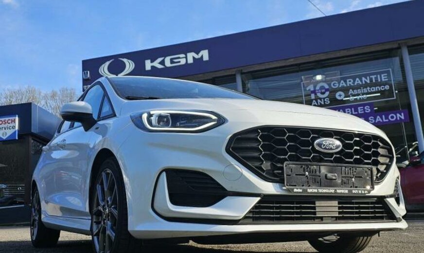liquide de refroidissement R1234yf, système d\\\'entrée et de démarrage sans clé, commande de la radio au volant, système de chargement sans fil pour GSM, moniteur couleur LCD 6,5\\\", phares de niveau 6, combiné instruments avec moniteur digital 12,3\\\", console centrale avec vide-poches, 3-ème appui-tête ar, série 32 ST-Line /ST-Line ST-Line 2 , siège passager réglable en hauteur, 998 cc 1,0 L 92 KW, suspension sport, assistant à la conduite, grille de calandre active, 7,5 J x 17 Alu \\\"Type 2\\\", 10 haut-parleurs avec Subwoofer, Mild Hybrid System, norme anti-pollution Euro 5, airbag pour la tête, pare-chocs av Sport, pare-chocs ar Sport
