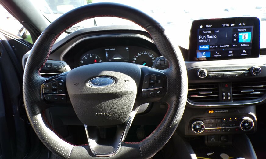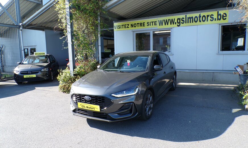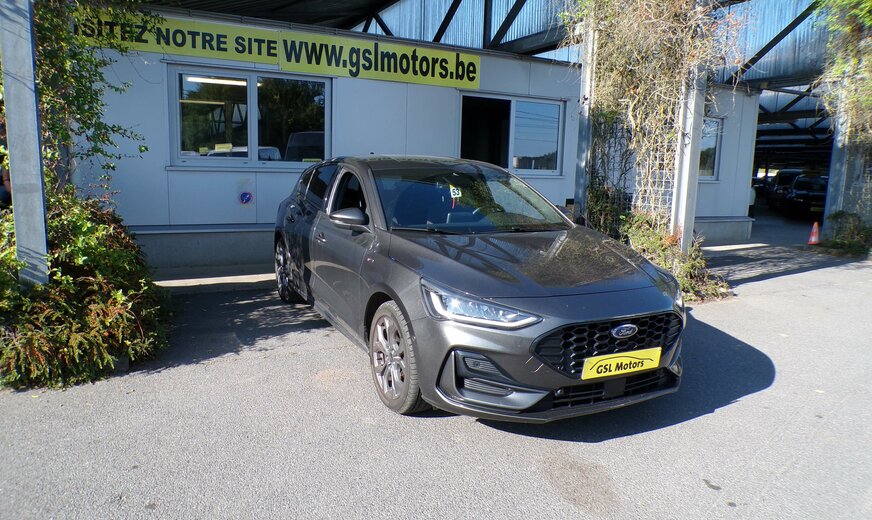 **Ford Focus 1.000cc essence 125cv MHEV ST-Line grise foncé métal du 14/10/2022 avec seulement 43.379km, 1er propriétaire avec suivi, Climatisation, Régulateur et limiteur de vitesse adaptatif, Capteurs d\\\'aide au stationnement avant et arriére, Avertisseurs d\\\'angles morts, Antiderive, Caméra de recul...****Véhicule vendu 18.250 € avec entretien complet, contrôle technique, Car-Pass et garanti 1 an.****Achat en crédit total possible sans acompte en 72 mois : 301,00 €/mois.**Visible au garage GSL motors, route de Mons 502, 6140 Fontaine l\\\'évêque entre Charleroi et Binche , ouvert du lundi au vendredi de 8h30 à 18h30 et le samedi de 9h à 17h.+ de 450 véhicules de stock! Visible au même endroit et sur www.gslmotors.be. * * Nous mettons tout en œuvre pour décrire nos véhicules le plus précisément possible, néanmoins il se peut qu’une option manque ou se soit glissée dans la liste détaillée de cette annonce * *