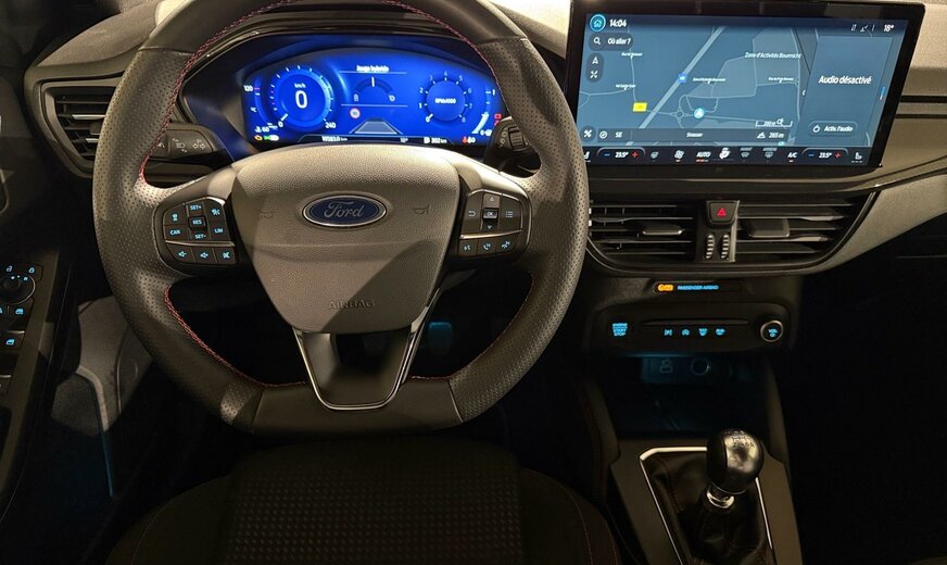 FORD FOCUS IV ST-LINE 125CV\r\nMoteur: 1.0L\r\nTransmission : MANUELLE 6 VITESSE\r\nVerrouillage centralisé à distance et sans clé\r\nSystème de navigation\r\nRégulateur de vitesse adaptatif\r\nAssistant au freinage d\'urgence\r\nAvertisseur angle mort\r\nAide au maintien de voie\r\nReconnaissance des panneaux routiers\r\nAndroid Auto\r\nApple Carplay\r\nBluetooth\r\nCockpit digitale\r\nCaméra de recul\r\nCapteur à l\'avant et à l\'arrière du véhicule\r\nPare-brise chauffant\r\nSièges avant et volant chauffant\r\nBarre de toit\r\nIsofix\r\nVéhicule non fumeur\r\nNous parlons français\r\nWe speak english\r\nWir sprechen Deutsch\r\nNoi parlamo Italiano\r\nFalamos Português\r\nGovorimo Srpsko Hrvatski\r\nSous réserve d\\\'erreur dans l\\\'annonce\r\nReprise de votre véhicule possible\r\nFinancement possible sur place: financement Crédit Classique ou Crédit Ballon\r\nEco taxe France non inclus
