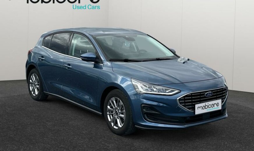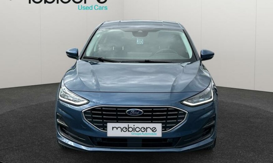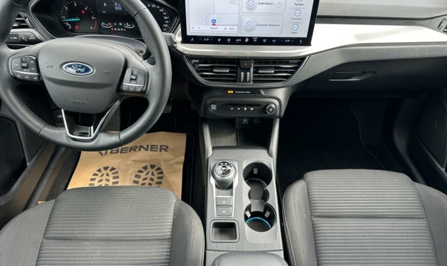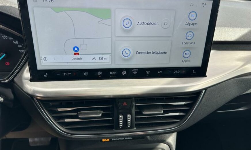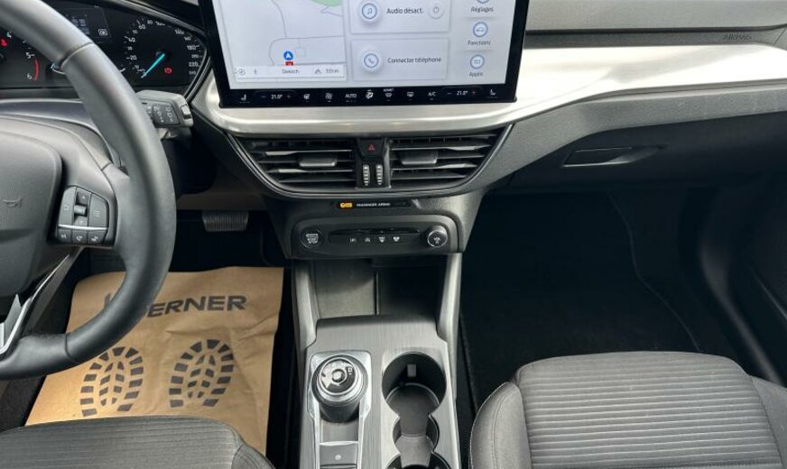 liquide de refroidissement R1234yf, enjoliveurs des cadres de vitres noir brillant, 6 haut-parleurs, Ford SYNC 4, commande de la radio au volant, sièges av Sport, série 40 Titanium , console pavillon central, 1498 cc 1,5 L 70 KW, grille de calandre active, 6,5 J x 16 Alu, frein à main électrique