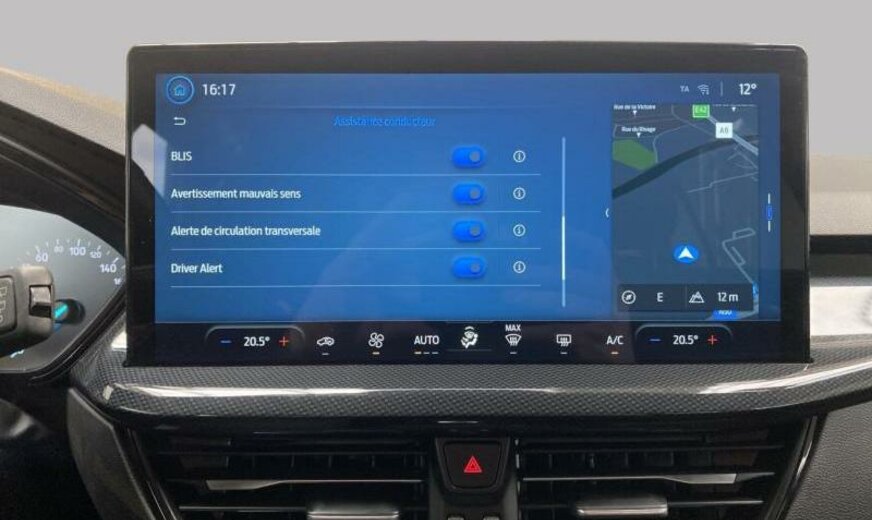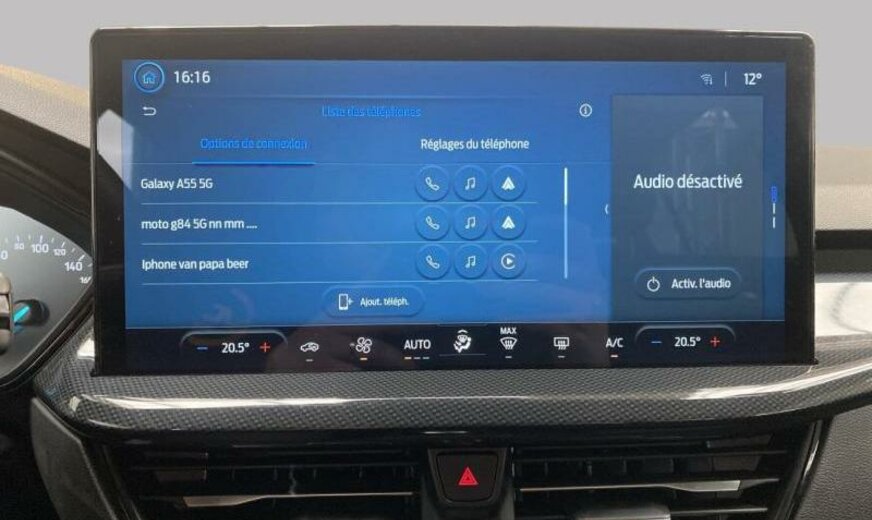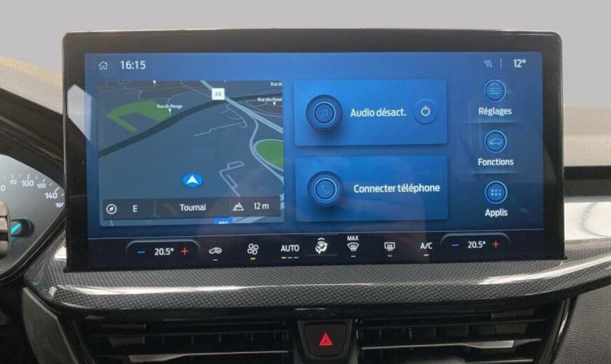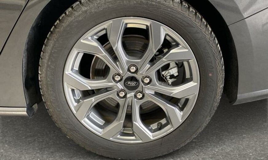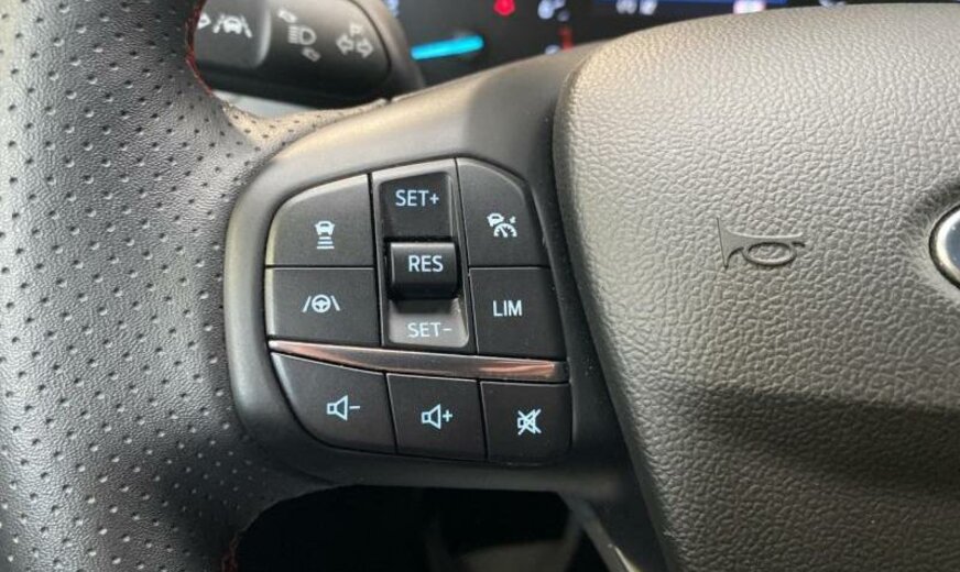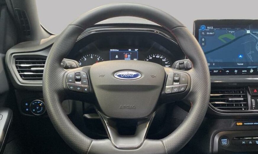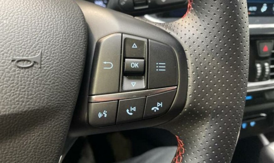 servofrein électrique, série ST-Line, chauffage supplémentaire électrique, liquide de refroidissement R1234yf, 6 haut-parleurs, Ford SYNC 4, commande de la radio au volant, sièges av Sport, volant sport, pommeau de vitesse en cuir, console pavillon central, 999 cc 1,0 L 110/114 KW, double sortie d\\\'échappement, grille de calandre active, pack suspension \\\"Handling\\\" suspension sport , suspension ar indépendante, JANTES ALU 7 J X 17, roue de secours temporaire, frein à main électrique, galerie de pavillon, pare-chocs Sport