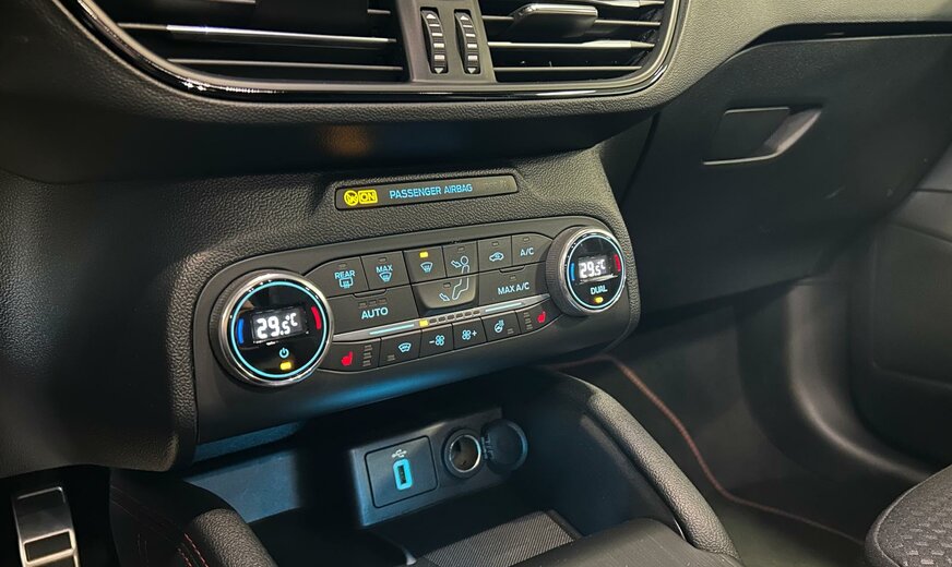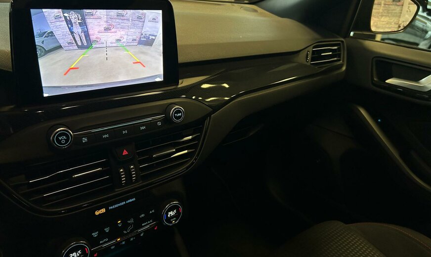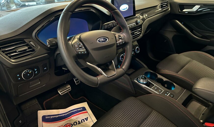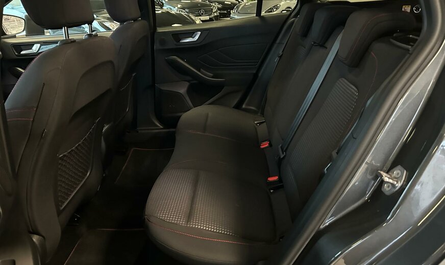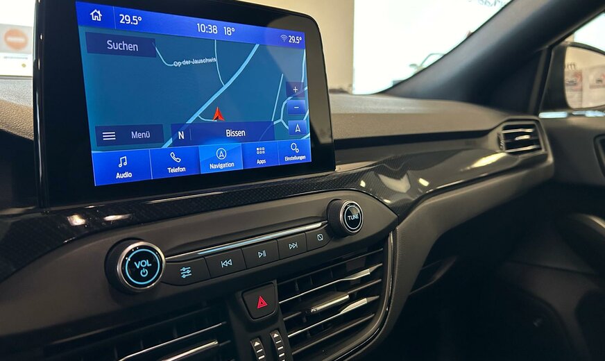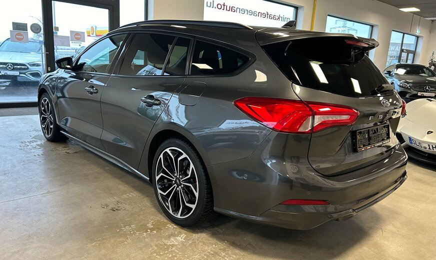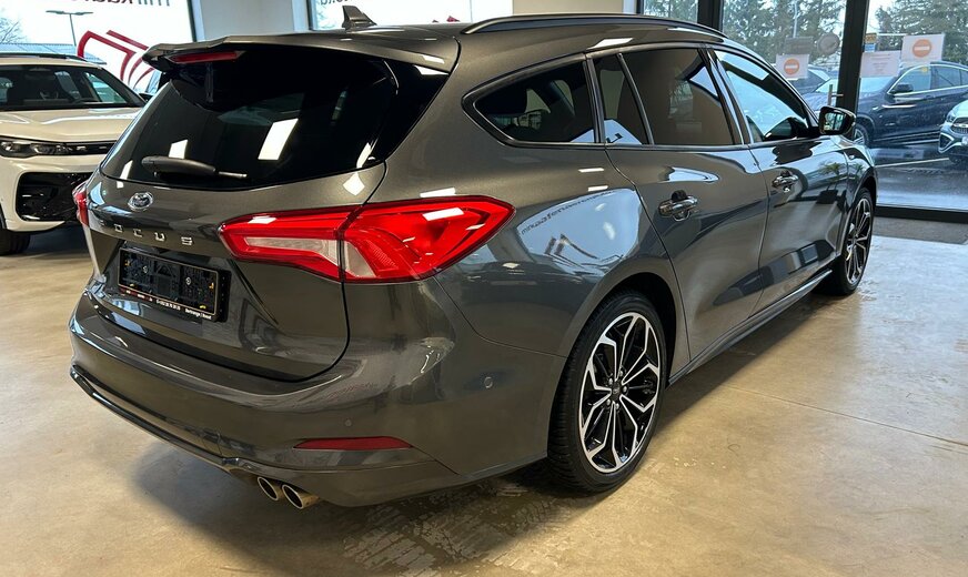 Ford Focus Sonderausstattung: Adaptive Scheinwerfer LED mit Abbiegelicht, AuÃenspiegel mit Totwinkel-Assistent, Induktionsladeschale für mobile Endgeräte, Lackierung Magnetic-Grau Metallic, LM-Felgen, Rückfahrkamera mit Split View, Technologie-Paket 2 Weitere Ausstattung: Airbag Beifahrerseite abschaltbar, Antischlupfregelung (ASR), Audio-Navigationssystem Ford mit AppLink, AuÃenspiegel elektr. anklappbar, AuÃenspiegel elektr. verstell- und heizbar, Blinkleuchte in AuÃenspiegel integriert, Body-Styling-Paket, Bord-/Verbrauchscomputer, Bremssättel Rot lackiert, Dachhimmel Stoff, dunkel, Dachreling schwarz, Dachspoiler (groÃe Ausführung) Wagenfarbe, Dimmer Instrumentenbeleuchtung, Doppelendrohr Auspuffanlage, Elektr. Bremskraftverteilung (EBD), Fahrassistenz-System: Berganfahr-Assistent (Hill-Holder), Fahrassistenz-System: Notbrems-Assistent, Fahrassistenz-System: Post-Collision-System, Fahrassistenz-System: Pre-Collision-System, Fahrassistenz-System: Spurhalteassistent, Family-Paket, Farbdisplay für Bordcomputer, Fensterheber elektrisch vorn + hinten mit KomfortschlieÃung, FordPass Connect inkl. eCall, FuÃmatten Velours mit Ziernähte, Gepäckraumabdeckung / Rollo, Getriebe Automatik - Typ: 8F24 (8-Stufen), Innenraumfilter: Staub- und Pollenfilter, Intelligent Protection System (IPS), Intelligenter Geschwindigkeits-Begrenzer, Isofix-Aufnahmen für Kindersitz, Karosserie: 5-türig, Kofferraumdeckel / Heckklappe elektr. betätigt (Ãffnung, sensorgesteuert), Kombiinstrument Digitalanzeige 12,3 Zoll, Komfort-Paket, Kopfstützen hinten mechan. verstellbar (3 Stück), Kopfstützen vorn 4-fach verstellbar, Lackierung Race-Rot, Laderaumboden verstellbar, Lenkrad (Sport/Leder, ST), Lenksäule (Lenkrad) höhen-/längsverstellbar, Mittelkonsole Premium, Motor 1,5 Ltr. - 134 kW EcoBoost KAT, My Key (2. Fahrzeugschlüssel programmierbar), Nebelscheinwerfer LED, Nebelscheinwerfer mit statischem Abbiegelicht, Otto-Partikelfilter (OPF), Parkbremse elektrisch mit Auto-Hold-Funktion, Parkpilotsystem vorn und hinten, Pedale Aluminium, Reifendruck-Kontrollsystem, Rücksitzlehne geteilt/klappbar (60:40), Schadstoffarm nach Abgasnorm Euro 6d-TEMP, Schalt-/Wählhebelgriff Aluminium, Schaltpunktanzeige, Scheinwerfer mit abgedunkelten Hintergrund, Scheinwerfer-Assistent mit Tag-/Nachtsensor, Sitz vorn links höhenverstellbar, Sonnenblende links mit Spiegel, Sonnenblende rechts mit Spiegel, Sport-Fahrwerk, Sportsitze vorn, Start/Stop-Anlage, Steckdose (12V-AnschluÃ) im Koffer-/Laderaum, Verglasung getönt, Verglasung hinten abgedunkelt (Privacy Glass), Warnanlage für Sicherheitsgurte hinten, Warnanlage für Sicherheitsgurte vorn, Zylinderabschaltung