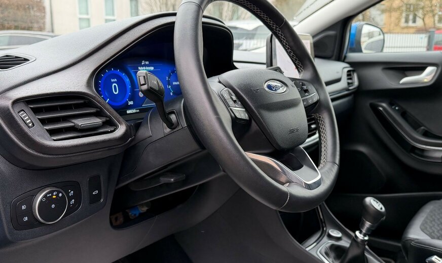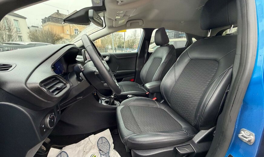 Ambiente-Beleuchtung vorn (LED), Antischlupfregelung (ASR), Audio-Navigationssystem Ford mit AppLink, AuÃenspiegel elektr. anklappbar, AuÃenspiegel elektr. verstell- und heizbar, Dachhimmel Stoff, Eco-Anzeige für verbrauchsoptimiertes Fahren (EcoCoach), Einparkhilfe hinten, Fahrassistenz-System: Berganfahr-Assistent (Hill-Holder), Fahrassistenz-System: Falschfahrer-Warnfunktion, Fahrassistenz-System: Fernlichtassistent (Scheinwerfer mit Abblendautomatik), Fahrassistenz-System: Notbrems-Assistent, Fahrassistenz-System: Post-Collision-System, Fahrassistenz-System: Pre-Collision-System, Fahrassistenz-System: Spurhalteassistent mit Müdigkeitserkennungs-Sensor, Fahrassistenz-System: Verkehrsschildassistent, Fensterheber elektrisch vorn + hinten mit KomfortschlieÃung, FordPass Connect inkl. eCall, FuÃmatten Teppich, Getriebe 6-Gang - Typ: 6MX65, Heckleuchten LED, Innenraumfilter: Staub- und Pollenfilter, Intelligent Protection System (IPS), Intelligenter Geschwindigkeits-Begrenzer, Isofix-Aufnahmen für Kindersitz, Karosserie: 5-türig, Komfort-Paket, Kopfstützen hinten mechan. verstellbar (3 Stück), Laderaumboden variabel (Ford Megabox), Lendenwirbelstütze Sitz vorn links, Lenksäule (Lenkrad) höhen-/längsverstellbar, LM-Felgen, Mild-Hybrid 92 kW (Motor 1,0 Ltr. - 92 kW EcoBoost), My Key (2. Fahrzeugschlüssel programmierbar), Nebelscheinwerfer LED, Otto-Partikelfilter (OPF), Radstand 2588 mm, Reifen-Reparaturkit, Reifendruck-Kontrollsystem, Rücksitzlehne geteilt/klappbar (60:40), Schadstoffarm nach Abgasnorm Euro 6d, Scheinwerfer-Assistent mit Tag-/Nachtsensor, Sitze vorn höhenverstellbar, Sonnenblende links mit Spiegel (beleuchtet), Sonnenblende rechts mit Spiegel (beleuchtet), Sportsitze vorn, Start/Stop-Anlage, Türgriffe auÃen Wagenfarbe, Verglasung hinten abgedunkelt (Privacy Glass)