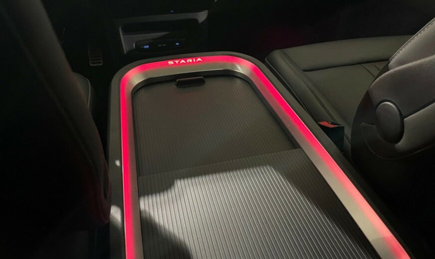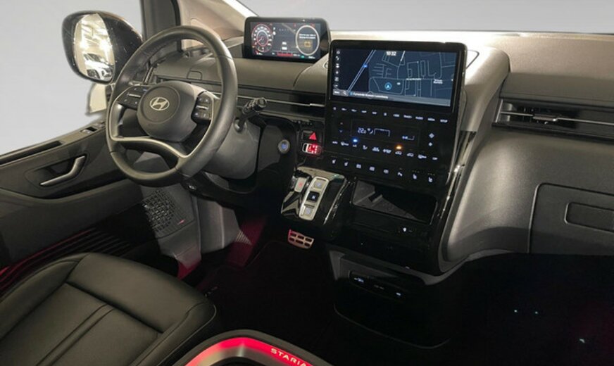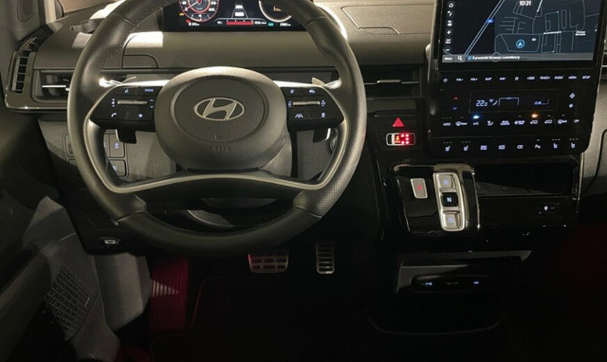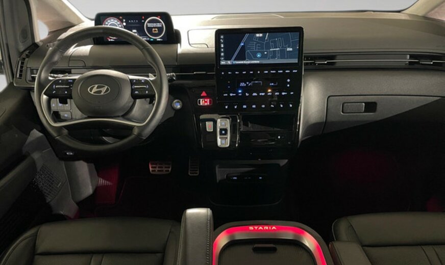 Hyundai Staria Informations générales Marque: Hyundai Modèle: Staria Type: 1.6 T-GDi HEV 6AT 7ST Luxury Bronze Année du modèle: 2024 Code du modèle: - Numéro de référence: SU008037 Numéro d'immatriculation: SU0080 Informations techniques Couple: 367 Nm Commande: Traction avant Réservoir de carburant: 65 litres Accélération (0-100): 10,2 s Vitesse de pointe: 167 km/h Mesures Dimensions (LxlxH): 525 x 197 x 199 cm Empattement: 327 cm Poids Poids à vide: 2.345 kg Capacité de charge: 605 kg PBV: 2.950 kg Environnement Ãmission de CO2 (WLTP): 172 g/km Label énergétique: D Classe d'émission: Euro 6e Consommation Consommation moyenne de carburant: 7,6 l/100km Garantie Garantie: Autopolis Occasion (â¬0) Garantie: 12 mois Paquets de livraison Emballage de livraison inclus: Autopolis Occasion (â¬0) Cet emballage de livraison contient: Autopolis Occasion (â¬0) (12 mois de garantie) HYUNDAI STARIA LUXURY BRONZE 159CV Moteur: 1.6L avec 4 cylindres en ligne Transmission : AUTOMATIQUE Verrouillage centralisé à distance  et sans clé Système de navigation Régulateur de vitesse / distance Assistant au freinage d\'urgence Alerte de franchissement de ligne Avertisseur angles morts Reconnaissance des panneaux routiers Sièges avants et volant chauffant Cockpit digital Capteur à l\'arrière et à l\'avant du véhicule Caméra de recul Park assist Bluetooth / Android Auto / Apple Carplay Dispositifs mains libres Volant multifonctions Climatisation auto Start / Stop automatique Isofix Véhicule non fumeur Nous parlons français We speak english Wir sprechen Deutsch Noi parlamo Italiano Falamos Português Govorimo Srpsko Hrvatski Sous réserve d\'erreur dans l\'annonce Reprise de votre véhicule possible Financement possible sur place: financement Crédit Classique ou Crédit Ballon Eco taxe France non inclus Bienvenue chez Autopolis Demandez dès maintenant une offre de reprise - sans aucun engagement - ou planifiez un essai du véhicule d'occasion de votre choix ! Nos conseillers commerciaux sont à votre disposition en ligne, par téléphone, ou directement en showroom. La liste des équipements a été établie avec le plus grand soin. Cependant, il se peut que certains équipements présents sur le véhicule ne soient pas mentionnés, ou que certains éléments indiqués ne soient finalement pas disponibles. Nous vous recommandons de vérifier les équipements importants pour vous avant de conclure votre achat. Cette liste est donnée à titre indicatif.Â