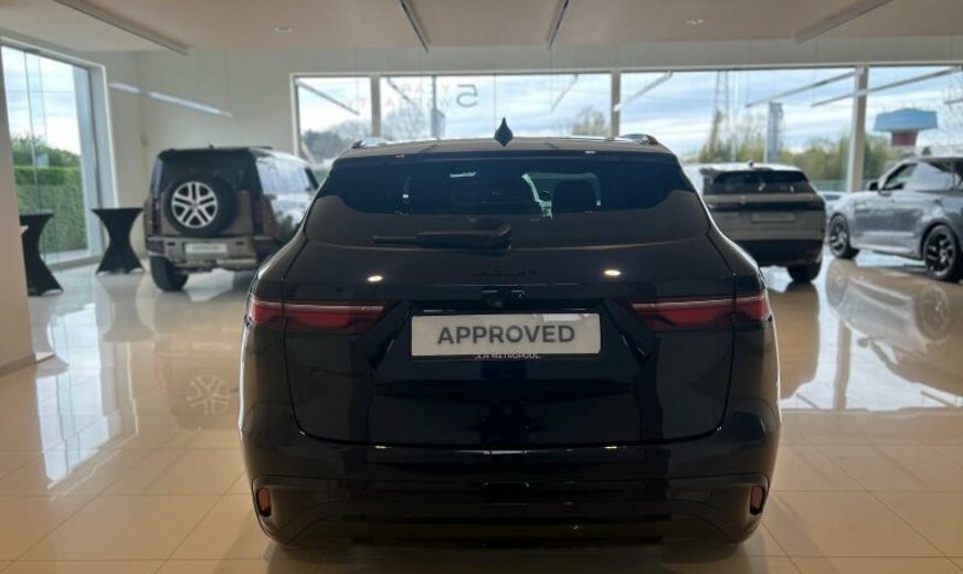 CO2:166gr/km blind spot assist pack, cold climate pack, 005cm, 005cn, front headrests with jaguar leaper embossing, secure tracker 12-month subscrlption , remote, 016xx, brake pads low copr fr/ zero copr nao rr, 021gz, 021qa, two-zone climate control, 022fb, 022ga, 022la, 024aa, 025cw, voice control, 025fw, digital audio broadcast dab radio, sound system, pivi diamond, navigation pro, wi-fi, sos assistance call, online pack with data plan, 025sf, 026ar, 026bk, open differential with torque vectoring by braking, pivi pro connected , 026rd, passive suspension, 028ee, towing eye cover narvik black, tyre repair system, body-coloured door mirror caps, lockable glovebox, 030ja, heated, electric, power fold door mirrors with approach lights and auto-dimming driver side, auto-dimming interior rear view mirror, ebony headlining, r-dynamic branded leather steering wheel, r-dynamic+black pack exterior 5, rear armrest with twin cupholders, heated front seats, rear centre headrest, door armrest - pvc, 40:20:40 split fold rear seat, 033lr, 033lv, sport seats, light oyster stitching, 033rj, 033va, 033xh, perforated grained leather seats with contrast stitching, 033zu, ebony / ebony, 035aa, euro/armen/kazakh 3yr conn. service pack, ip stitch - light oyster, tyre config 4, speedometer kph, ip contrast - ebony/ebony, 039ia, heated washer jets, stop/start, r-dynamic model, 041ww, 043bc, metal loadspace scuff plate, metal treadplates with r-dynamic branding, manually adjustable steering column, 050ba, locking wheel nuts, 053fa, power socket s , powerpack 15, 056aa, front number plate fixing row, 056bk, 056by, 057zk, tyre pressure monitoring system tpms , 19\\\" wheel, daytime running lights drl , gloss black grille with gloss black surround, cabin lighting, led headlights with signature drl, adaptive cruise control, emergency braking, 066cz, powered tailgate / boot lid, 068ac, tailgate / boot lid spoiler, intrusion sensor, double locking, 076ez, satin chrome gearshift paddles, 079aw, body-coloured door handles, gloss black side vents, gloss black extended side sills, cladding/sill body colour, lane keep assist, 080za, gloss black side window surround, int env col ebony, traffic sign recognition and adaptive speed limiter, driver condition monitor, rear camera, forward facing camera, 086ma, 086na, 11.4\\\" touchscreen, jaguardrive control, connected navigation pro, nav region 1 europe, morzine headlining, ip pu/pvc, console stitch - light oyster, door stitch light oyster, non-smoker\\\'s pack, 095ja, 095sc, tyre recommended plate non english, 096va, 102ag, twin-blade sunvisors with illuminated vanity mirrors, 116az, ebony carpet, power output - 163ps, 153ba, 153ez, 153fa, 153ha, wireless charger with booster - 5 freq, front seat cushion power fore/aft, front seat cushion power height, front seat cushion power tilt, 180gg, front seat squab power recline, 180ee, front headrest manual height, 180hh, 180jj, front seat lumbar - 4 way, apple carplay® subject to availability , android auto™ subject to availability , connected navigation data, 183ha, esim, 184aa, 188fa, ebony morzine headlining, 188kc, 188la, 2.0 aj21 d4m, front and rear parking aid, 2.0 aj21 d4m 200dw, 194aa, 263aa, 40:20:40 folding rear seats with centre armrest, f-pace, group 1, d7a, r-dynamic s, 381aa, 382aa, k9999, styling - r-dynamic, 017ee, 017gz, 032ez, 074pu, 187ez, interior enviroment pack 297, auto 8 speed trans - 8hp51, wireless device charging with phone signal booster, auto high beam assist ahba , sliding panoramic roof, keyless entry, ebony perforated duoleather sport seats with ebony/ebony interior, 19\\\" style 5037, gloss black, front fog lights, privacy glass, 12-way heated electric front seats with 2-way manual headrests, black exterior pack, rear seat remote release levers, production build for retailer ordering, gloss black roof rails, portofino blue, animated directional indicators, front driver display, rear spring load class c, 017hb, 017uc, 018ba, 005zz, front spring load class c, 702sv, 23my, r-dynamic s 163ps auto