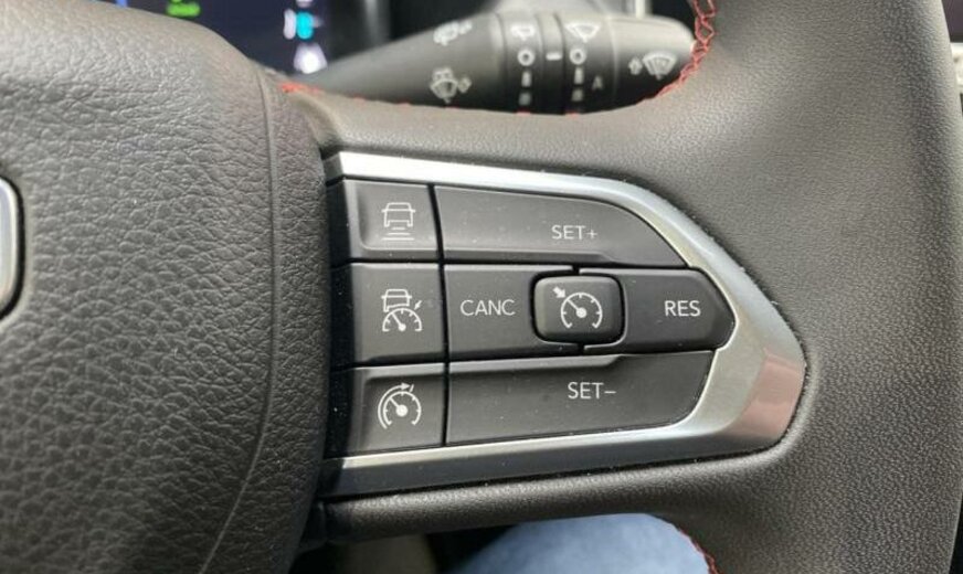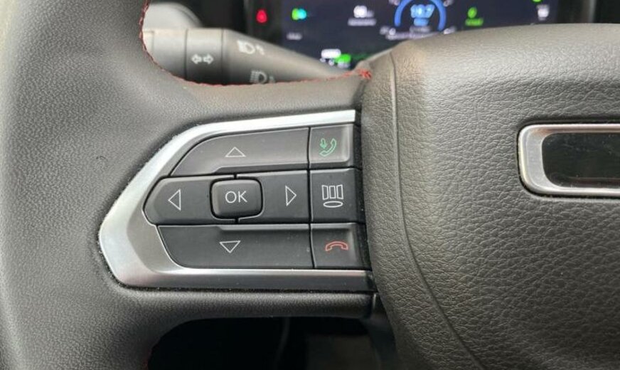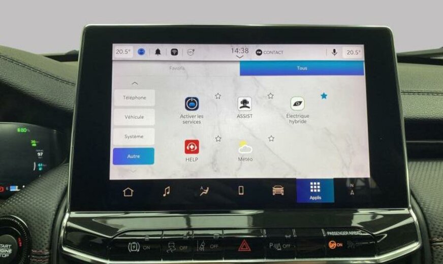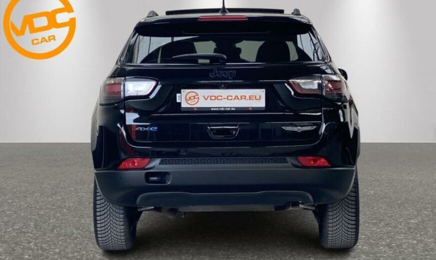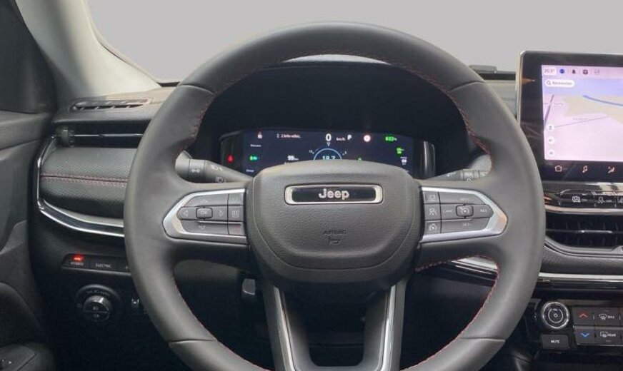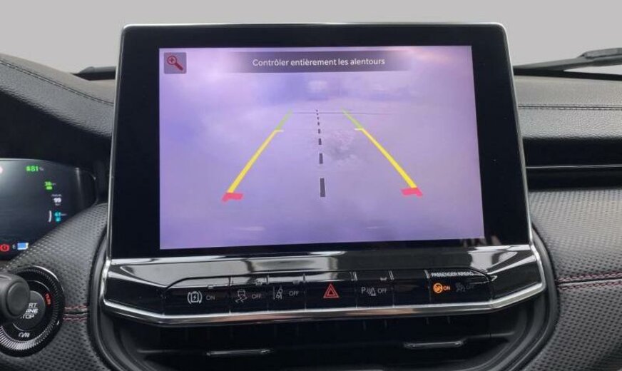 autocollants sur le capot moteur, rétroviseurs Gloss Black, Series \\\"Premium\\\" P , Keyless-Entry, rétroviseurs avec clignotant intégré, rétroviseurs rabattables électrique, rétroviseurs chauffants, feux ar Premium, système \\\"U-connect\\\", allumage automatique des phares, feu antibrouillard ar, hayon avec commande mains libres électrique, moniteur LCD 10,1\\\", écran grille de calandre gris satiné, enjoliveurs avec insert Neutral gris, pare-chocs av/ar peints, enjoliveurs cadre de portes noir brillant, monogrammes gloss noir, 1332 cc 1,3 L 132 KW essence / 44 KW électrique , \\\"Off-Road\\\", AWD, PHEV System, freins Heavy Duty , protection des piétons, airbag pour les genoux, galerie de pavillon noire, Italie MV, poignées de porte peintes