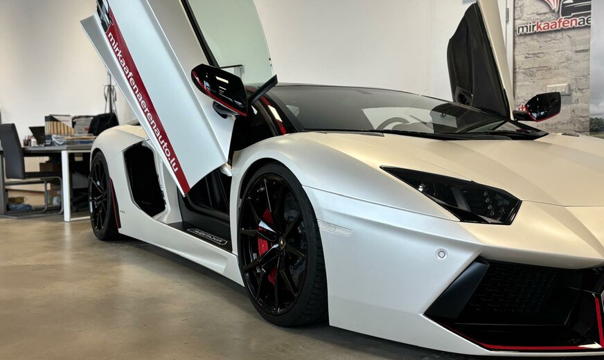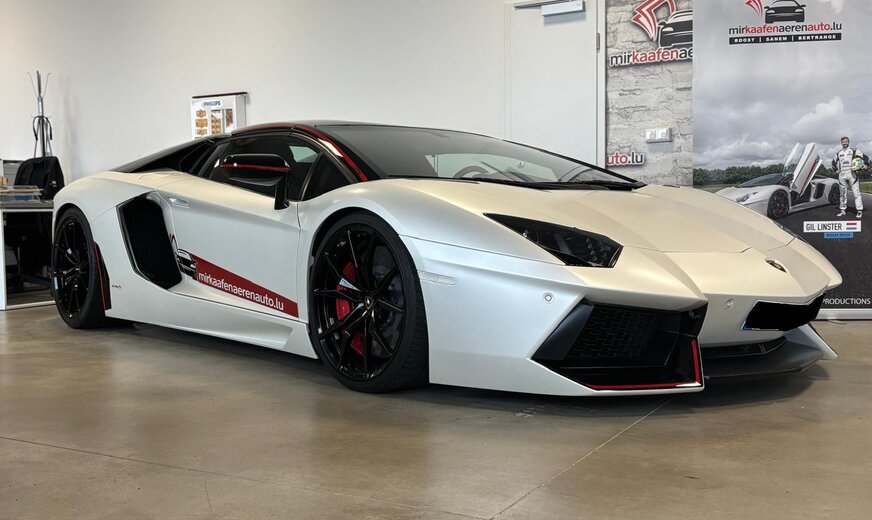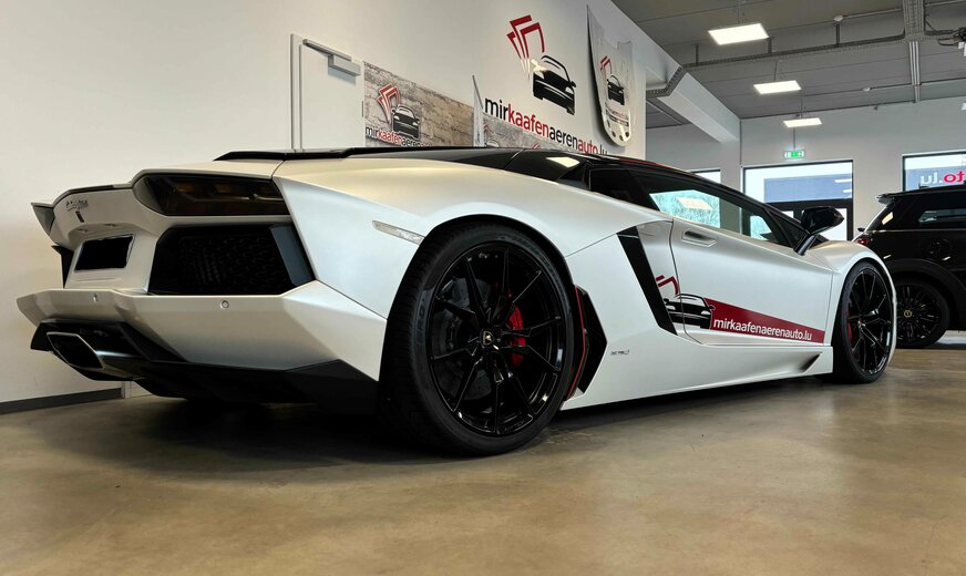 Lamborghini Aventador ∗∗∗∗∗Lamborghini Aventador LP 700-4 Roadster Pirelli Edition∗∗∗∗∗ Erleben Sie die atemberaubende Kraft des Lamborghini Aventador Cabrio. Dieses exklusive Fahrzeug aus dem Jahr 2016 bietet mit seinem 6,5-Liter-Motor eine beeindruckende Leistung von 700 PS. Der Allradantrieb in Kombination mit dem manuellen Getriebe ermöglicht ein authentisches Fahrerlebnis, wie es nur ein echter Supersportwagen bieten kann. Die matte Lackierung unterstreicht den exklusiven Charakter dieses außergewöhnlichen Fahrzeugs. Mit einer Länge von 4780 mm, einer Breite von 2030 mm und einer Höhe von nur 1136 mm präsentiert sich der Aventador in klassischer Supersportwagen-Silhouette. Das Interieur ist auf den Fahrer ausgerichtet, mit zwei Sportsitzen, Lederausstattung am Lenkrad und elektrisch verstellbaren Sitzen für optimalen Komfort. 700 PS starker Benzinmotor mit 6498 ccm Hubraum Allradantrieb mit manuellem Schaltgetriebe und Schaltwippen Matte Außenlackierung mit LED-Tagfahrlicht und Bi-Xenon-Scheinwerfern Automatische Klimaanlage und Start-Stopp-System Navigationssystem, Bluetooth und USB-Anschluss Sportliche Zweisitzer-Konfiguration mit elektrisch verstellbaren Sitzen Rollover-Schutzsystem für erhöhte Sicherheit im Cabrio Reifendruckkontrollsystem und umfassende Airbag-Ausstattung Regensensor und Lichtsensor für erhöhten Fahrkomfort Sprachsteuerung für intuitive Bedienung der Bordsysteme UNFALLFREI Scheckheft Komplett bei Lamborghini ABS ESP Lichtsensor Regensensor Reifendruckkontrolle Start/Stopp-Automatik Traktionskontrolle Armlehne Elektr. Fensterheber Elektr. Seitenspiegel Elektr. Sitzeinstellung Lederlenkrad Zentralverriegelung Berganfahrassistent Bordcomputer Schaltwippen Servolenkung Bluetooth CD-Spieler Navigationssystem Sprachsteuerung USB Leichtmetallfelgen Scheinwerferreinigung Tuner/Radio: Tuner/Radio Klimatisierung: Klimaautomatik Airbags: Front-, Seiten- und weitere Airbags Tagfahrlicht (Art): LED-Tagfahrlicht Hauptscheinwerfer: Bi-Xenon Scheinwerfer Pannenhilfe: Pannenkit