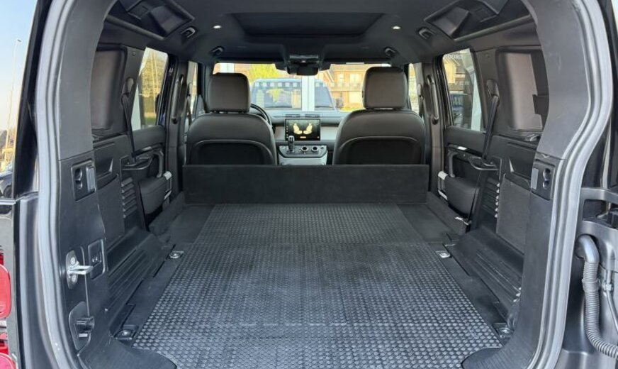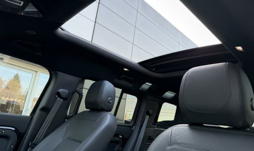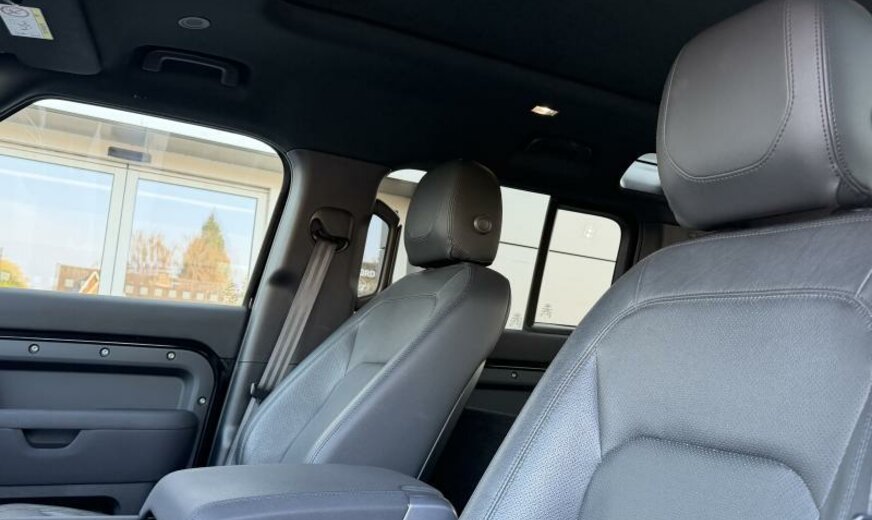 CO2:243gr/km cold climate pack, secure tracker 12-month subscrlption , remote, two-zone climate control, voice control, digital audio broadcast dab radio, meridian™ sound system, pivi - diamond, navigation pro, wi-fi, sos assistance call, online pack with data plan, front passenger seat isofix, loadspace partition net, isize, pivi pro connected , twin front cupholders, electronic air suspension, adaptive dynamics, open differential with torque vectoring by braking, detachable tow bar, towing eye cover-anthracite, heated, electric, power fold door mirrors with approach lights and auto-dimming driver side, ebony headlining, base +black pack 90/110 , 5 seats, heated front seats, rear centre headrest, driver and passenger seat memory, rear armrest with twin cupholders, 40:20:40 split fold rear seat, door armrest - pu, ebony / ebony, ip contrast-ebony/ebony, stop/start, signature graphic with interior storage , locking wheel nuts, black roof rails, tyre pressure monitoring system tpms , 19\\\" wheel, loadspace cover, ip insert - light grey, front fog lights, automatic headlight levelling, daytime running lights drl , led tail lights, grille-narvik black/narvik blck surround, premium cabin lighting, cruise control and speed limiter, emergency braking, keyless entry, side hinged tailgate, clear exit monitor, wade sensing, bbus with tilt sensor, double locking, intrusion sensor, active transmission warming, body-coloured roof, body-coloured door handles, gloss black side vents, bmpr lwr vlc - ceres silver satin, bodyside cladding - anthracite, gloss black bonnet louvres, int env col - ebony, lane keep assist, traffic sign recognition and adaptive speed limiter, driver condition monitor, blind spot assist, 3d surround camera, forward facing camera, rear traffic monitor, connected navigation pro, terrain response, morzine headlining, ip - pu, console finisher-pu, contrast tailgate - body coloured, aerodynamic capability, non-smoker\\\'s pack, enterprise bill of material - yes, vehicle support structure - yes, variant - yes, tyre recommended plate - non english, sunvisors with illuminated vanity mirrors, leather gearshift, seat cushion power fore/aft, seat cushion power height, seat cushion power tilt, seat squab power recline, front headrest manual height, front seat lumbar - 4 way, apple carplay® subject to availability , android auto™ subject to availability , connected navigation data, esim, 360° parking aid, 3l aj20 d6h, cross car beam in light grey powder coat brushed finish, 40:20:40 folding rear seats with centre armrest, defender, group 1, d7u, se, nitra plant, tyre config 1, powerpack 18, interior enviroment pack 27, auto 8 spd auto trans zf 8hp76, ebony morzine headlining, privacy glass, folding fabric roof, ebony grained leather seat facings with ebony interior, 12-way heated, electric memory front seats with 2-way manual headrests, production build for retailer ordering, 19\\\" full size spare wheel, black exterior pack, 19\\\" style 6010, gloss black, detachable tow bar, se 200ps auto, auto high beam assist ahba , premium led headlights with signature drl, auto-dimming interior rear view mirror, map pocket - net, analogue dials with central tft display, centre console with armrest, manually adjustable steering column, 3l aj20 d6h, taurus leather, 23my, 11.4\\\" touchscreen, santorini black